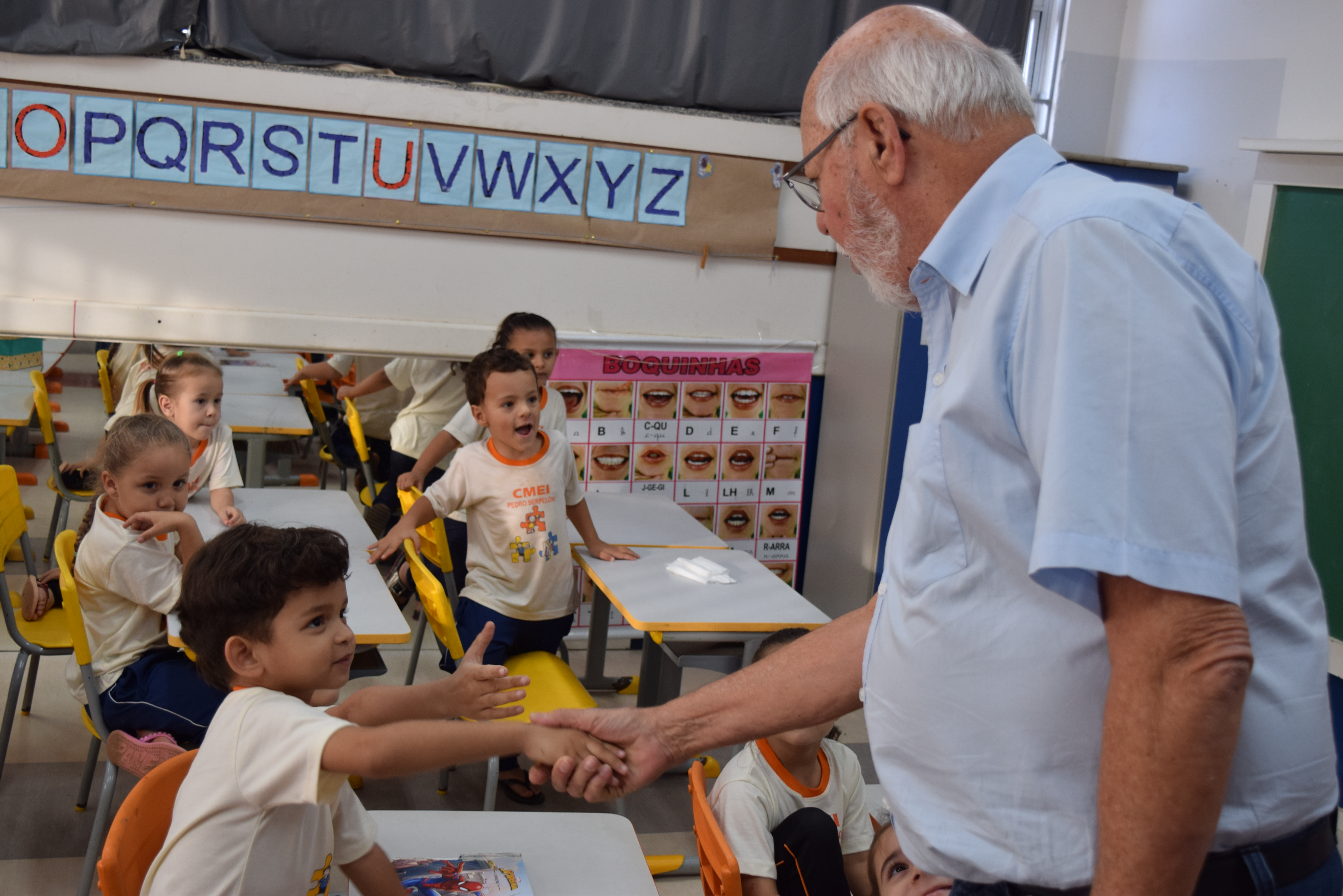 Alunos do CMEI Pedro Serpeloni, em São Martinho, participam do projeto “80 anos, minha cidade, minha História” abordando o que faz um prefeito municipal.