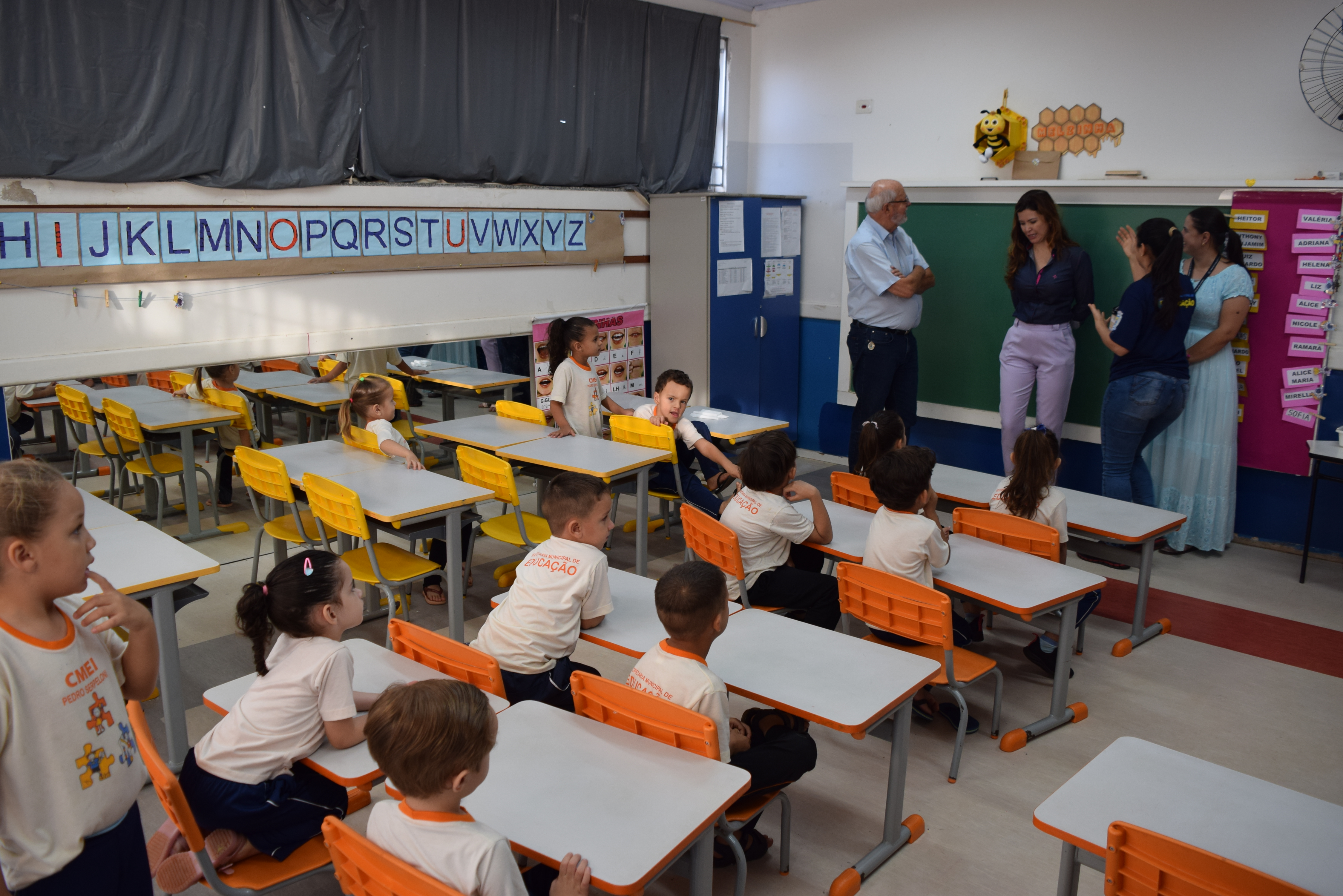 O prefeito Ailton Maistro foi acompanhado da secretária de Educação, Leise Camargo e da diretora da secretaria de Educação, Márcia Serpeloni e na oportunidade recebeu em mãos uma carta com propostas dos alunos.