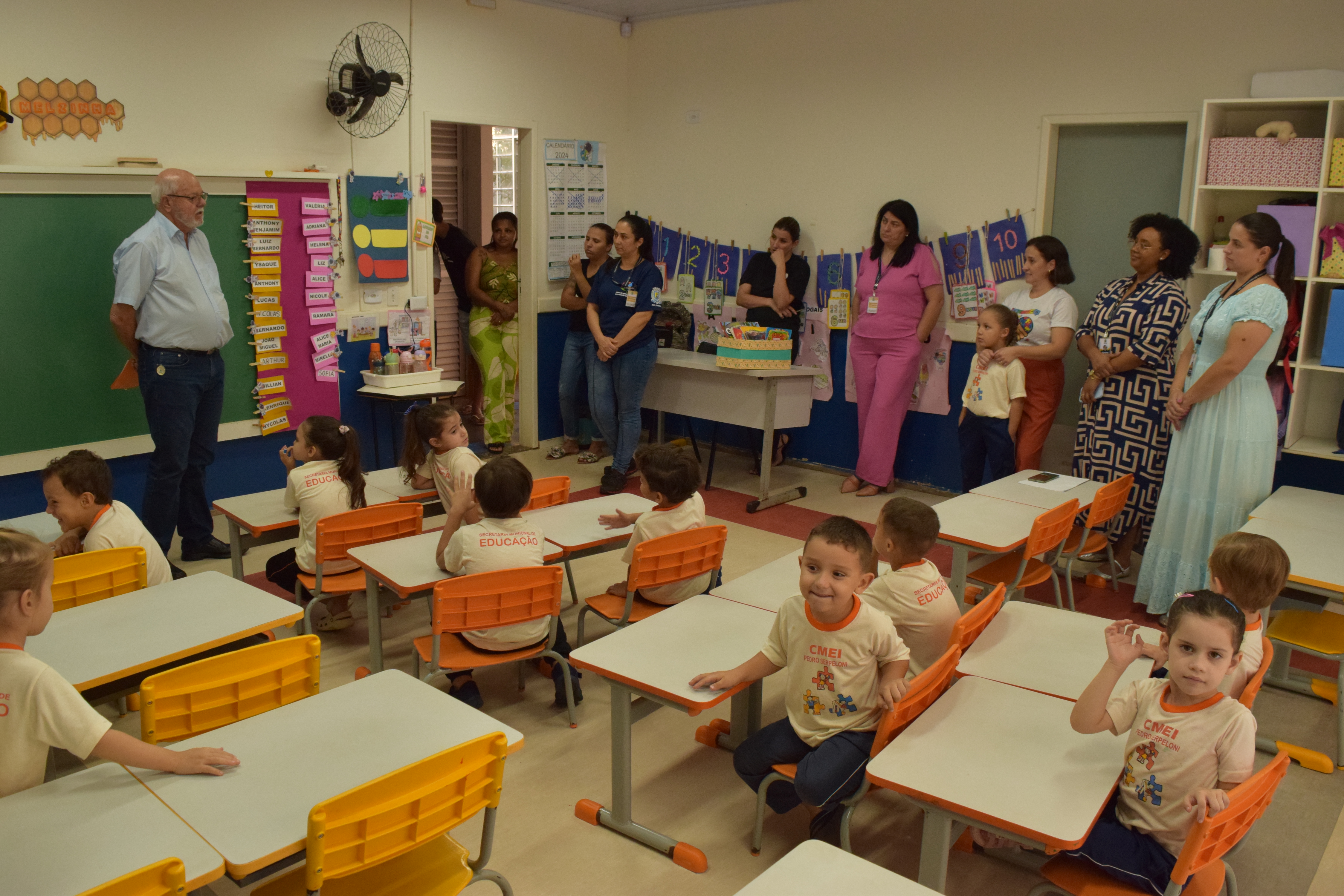 Como parte do projeto, a direção do CMEI através da sua diretora Flaviane Ramos Moreira e sua coordenadora pedagógica, Luciana Di Pietro convidaram o prefeito Ailton Maistro para conferir os trabalhos.