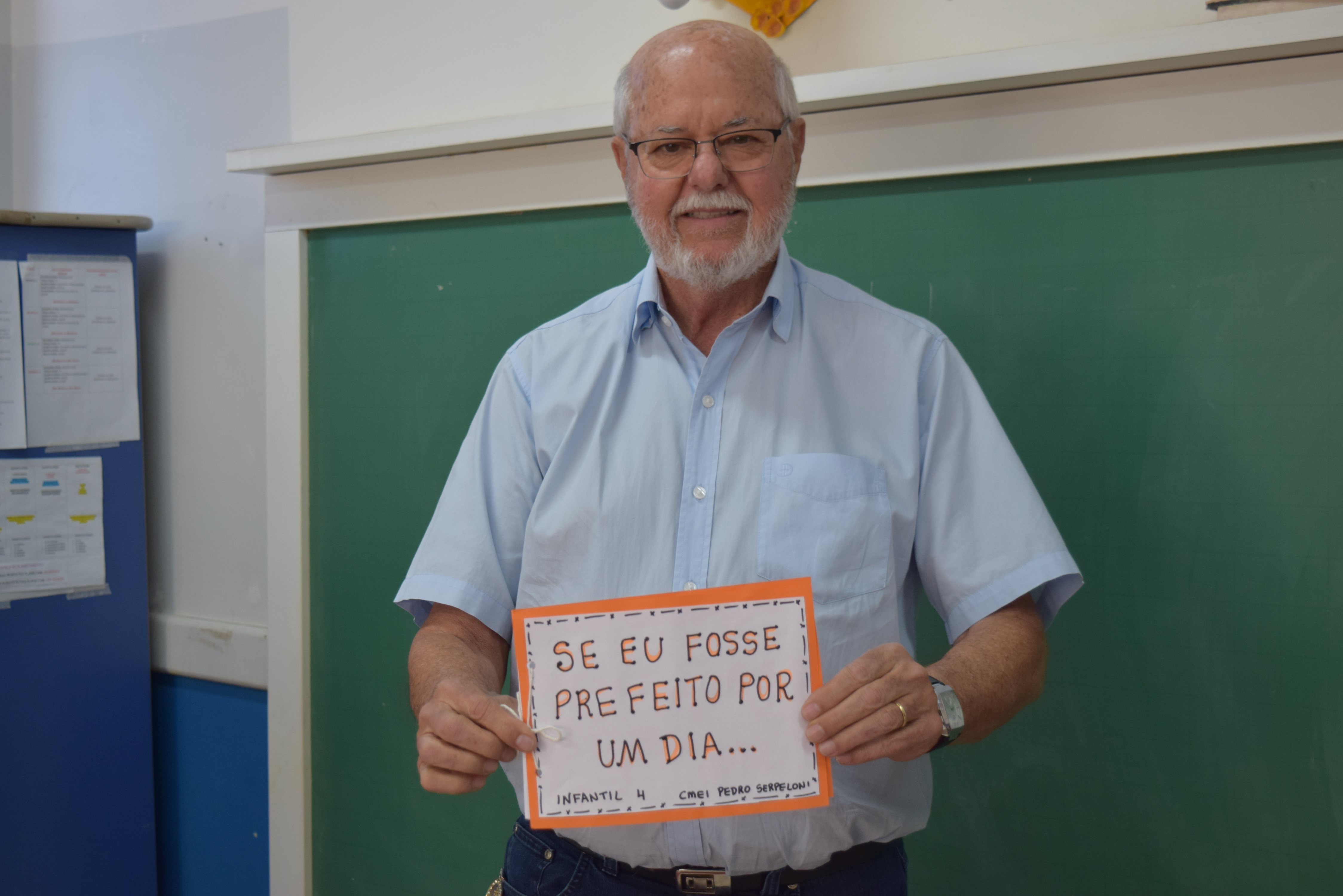 O prefeito Ailton Maistro agradeceu a carta. Contou um pouco como é ser prefeito, os seus desafios e fez um convite para que os alunos o visitem em seu gabinete.