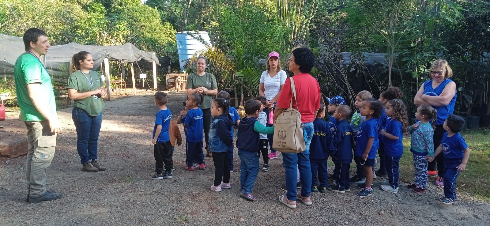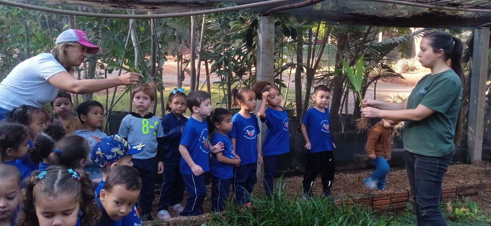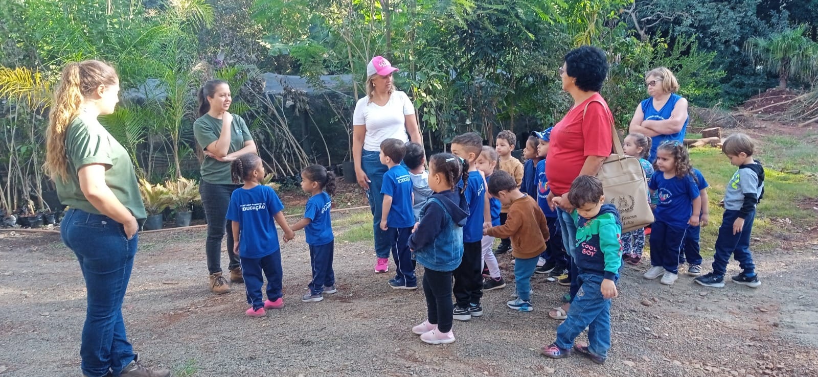 No dia 20 de junho a turma do Infantil 3 E do período matutino, da professora Adriana Cristina Fernandes, e a turma do Infantil 3 G do período vespertino, da professora Dolores de Oliveira Lopes, do Cmei Marly do Nascimento Santos, do conjunto Parigot de Souza, visitaram o Viveiro Municipal de Rolândia.