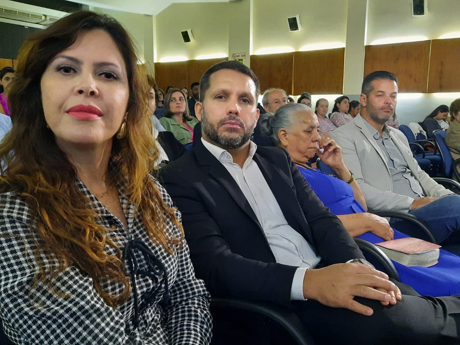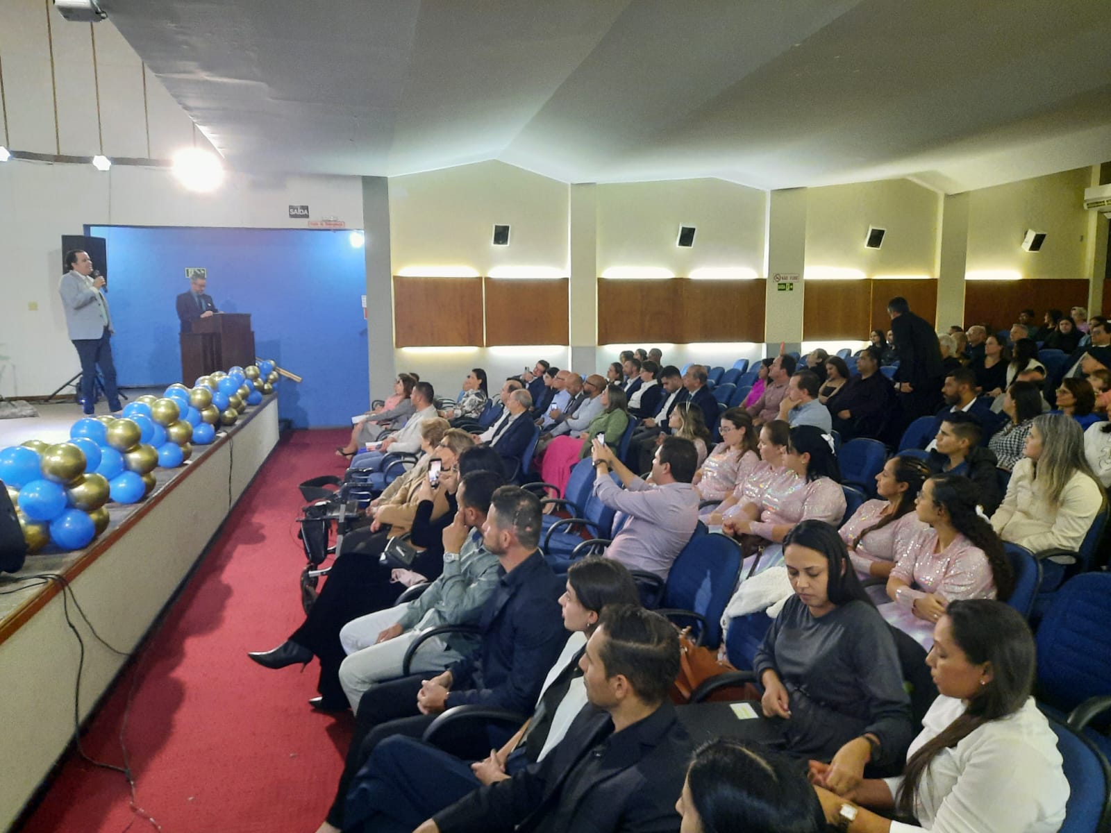 A secretária de Educação, Leise Camargo e os vereadores Guilherme Spanguembeg e Isaac Altino participaram na última quinta-feira (27/06) da solenidade em comemoração aos 50 anos da Faculdade Paranaense (FACCAR) em Rolândia.