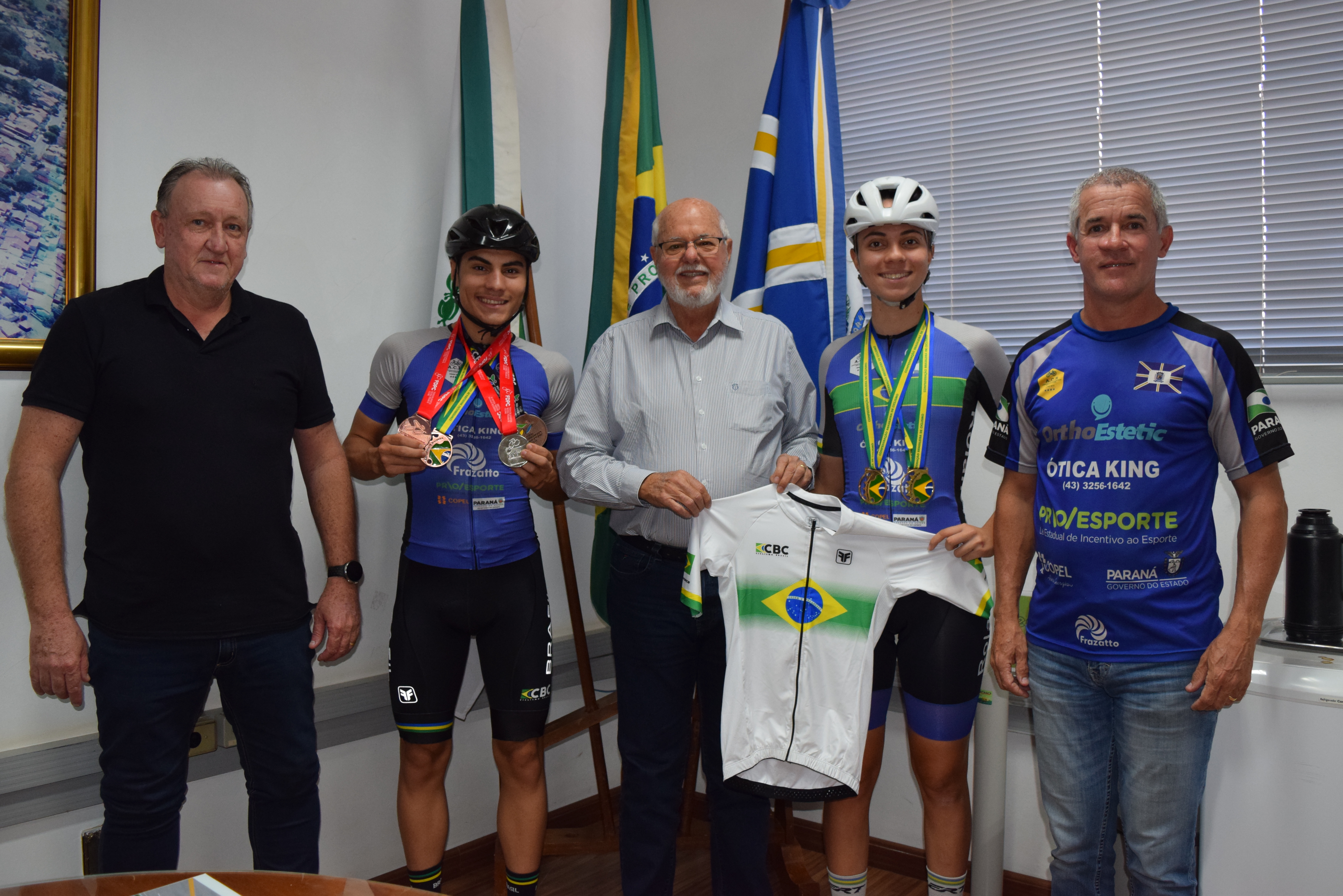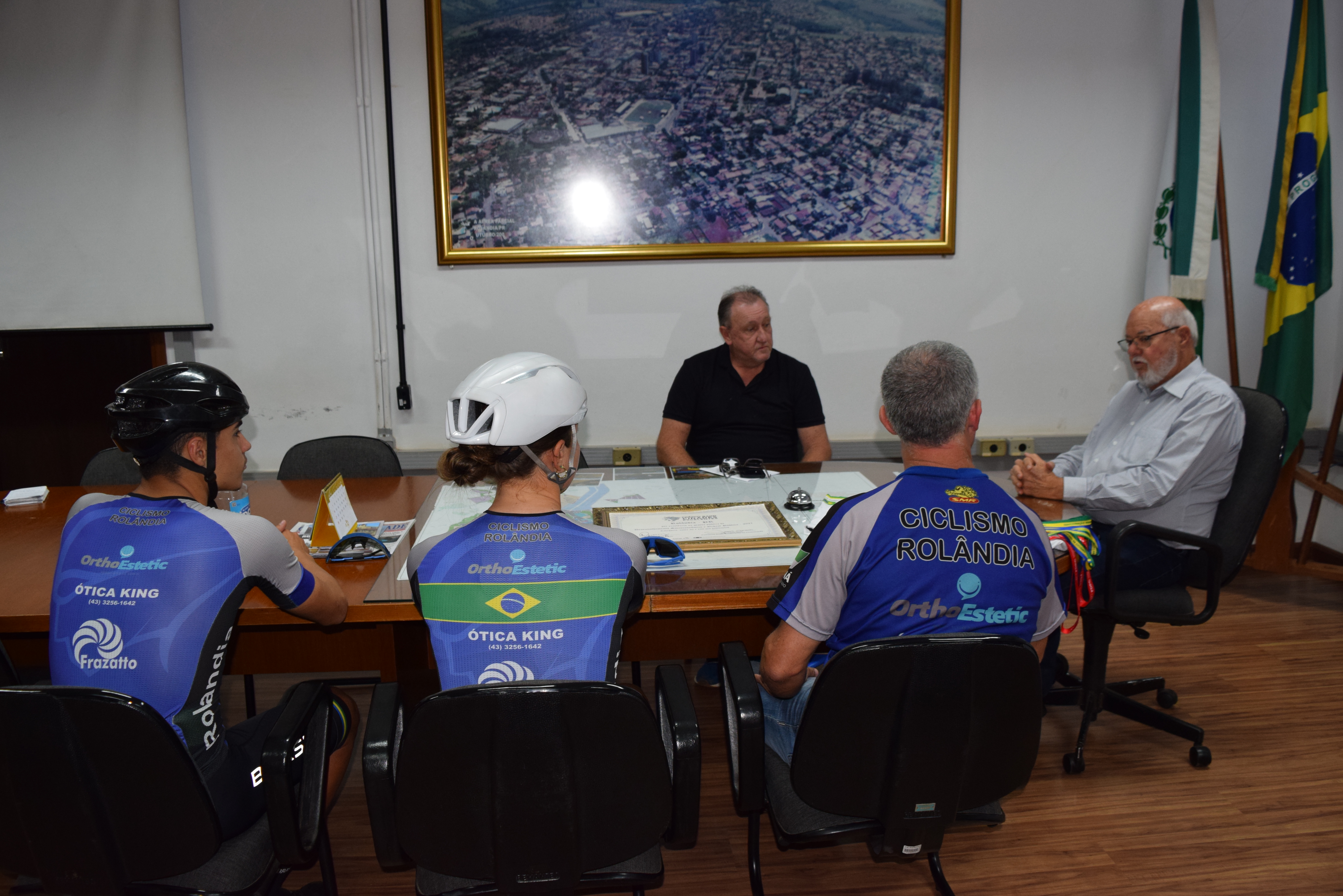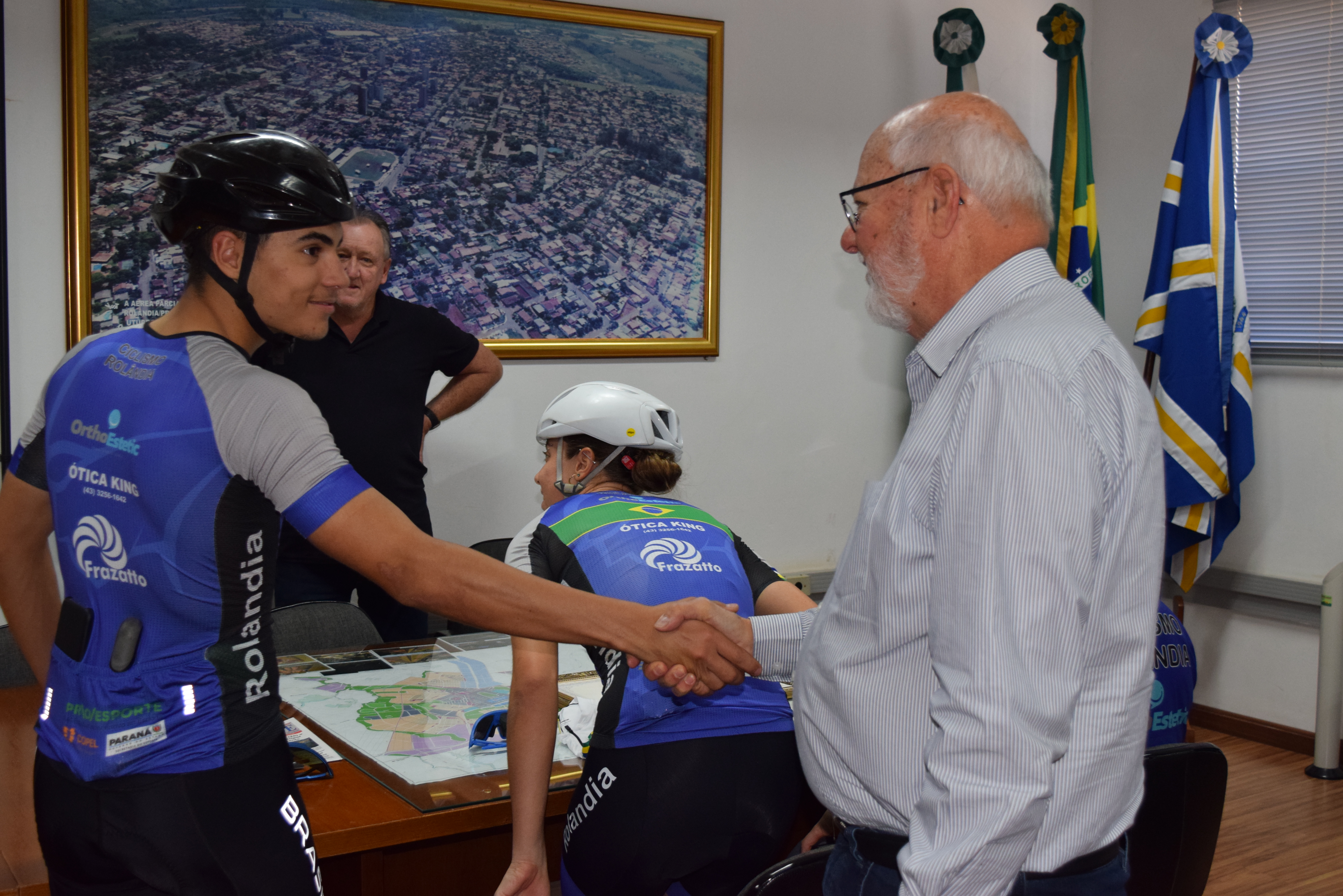 Nesta quarta-feira, dia 3 de julho, o prefeito Ailton Maistro e o secretário de Esportes, Odir Polaco, receberam no gabinete do prefeito, o técnico da equipe de ciclismo, da secretaria de Esportes, José Ricardo Moraes e os atletas Catharine Ehrmann Vieira e Matheus Constantino.
