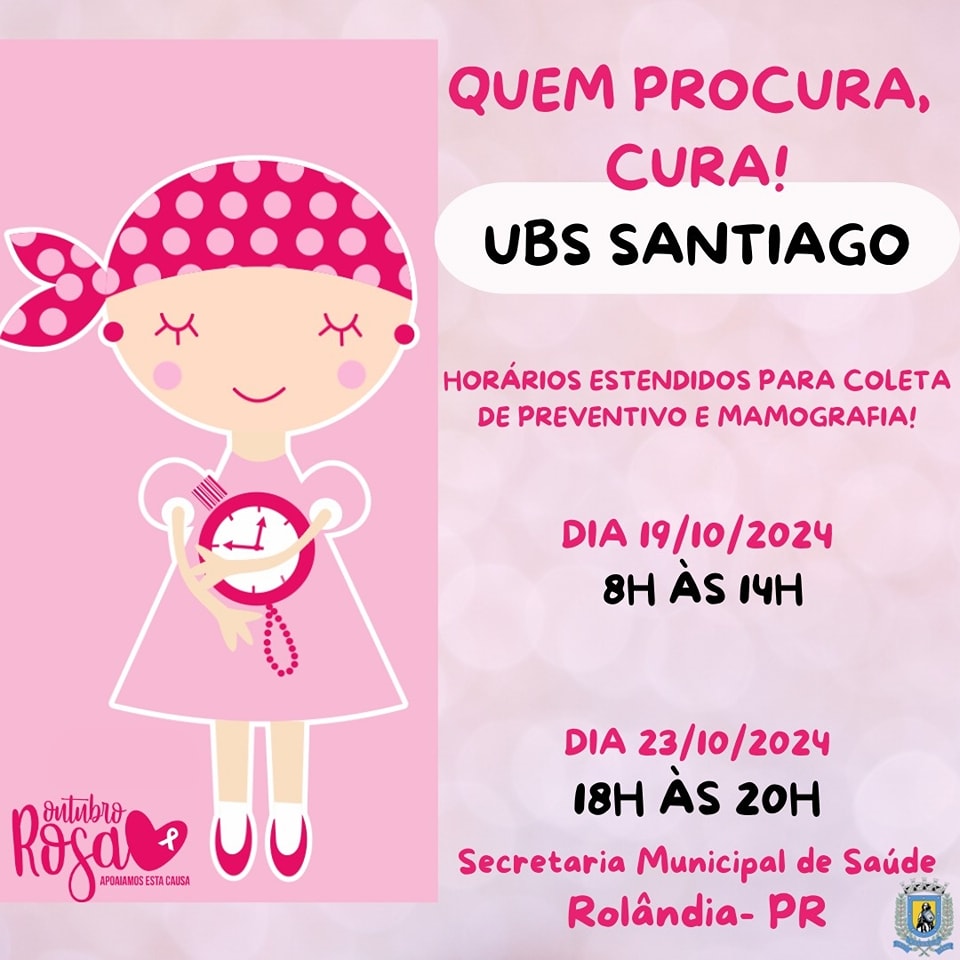 OUTUBRO ROSA EM ROLÂNDIA TEM COMO TEMA “QUEM PROCURA, CURA!"