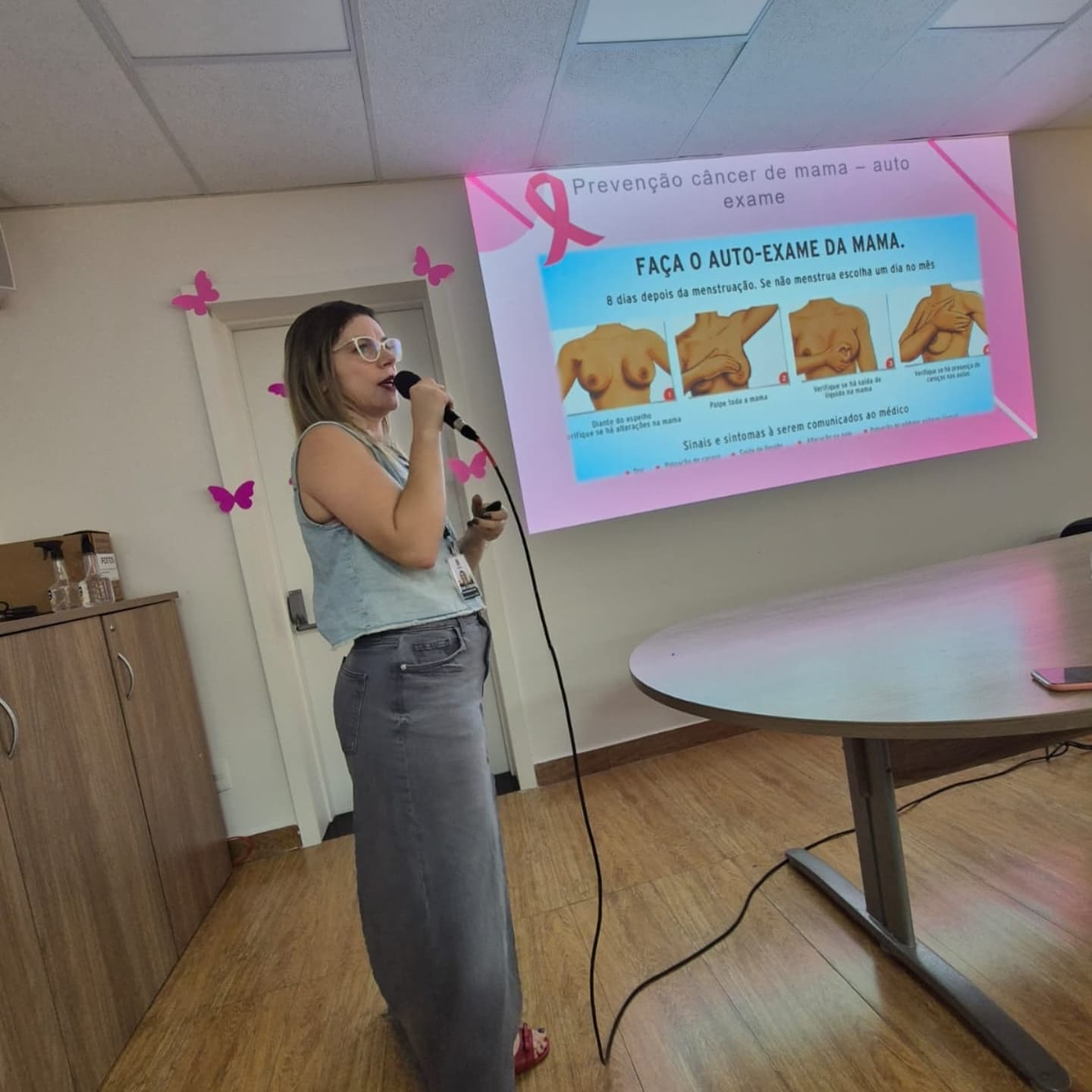 No dia 8 de outubro, a enfermeira Taís Stechi, da Secretaria de Saúde, ministrou uma palestra em alusão à prevenção ao câncer de mama e de colo de útero na empresa Vancouros, dentro da campanha "Outubro Rosa".