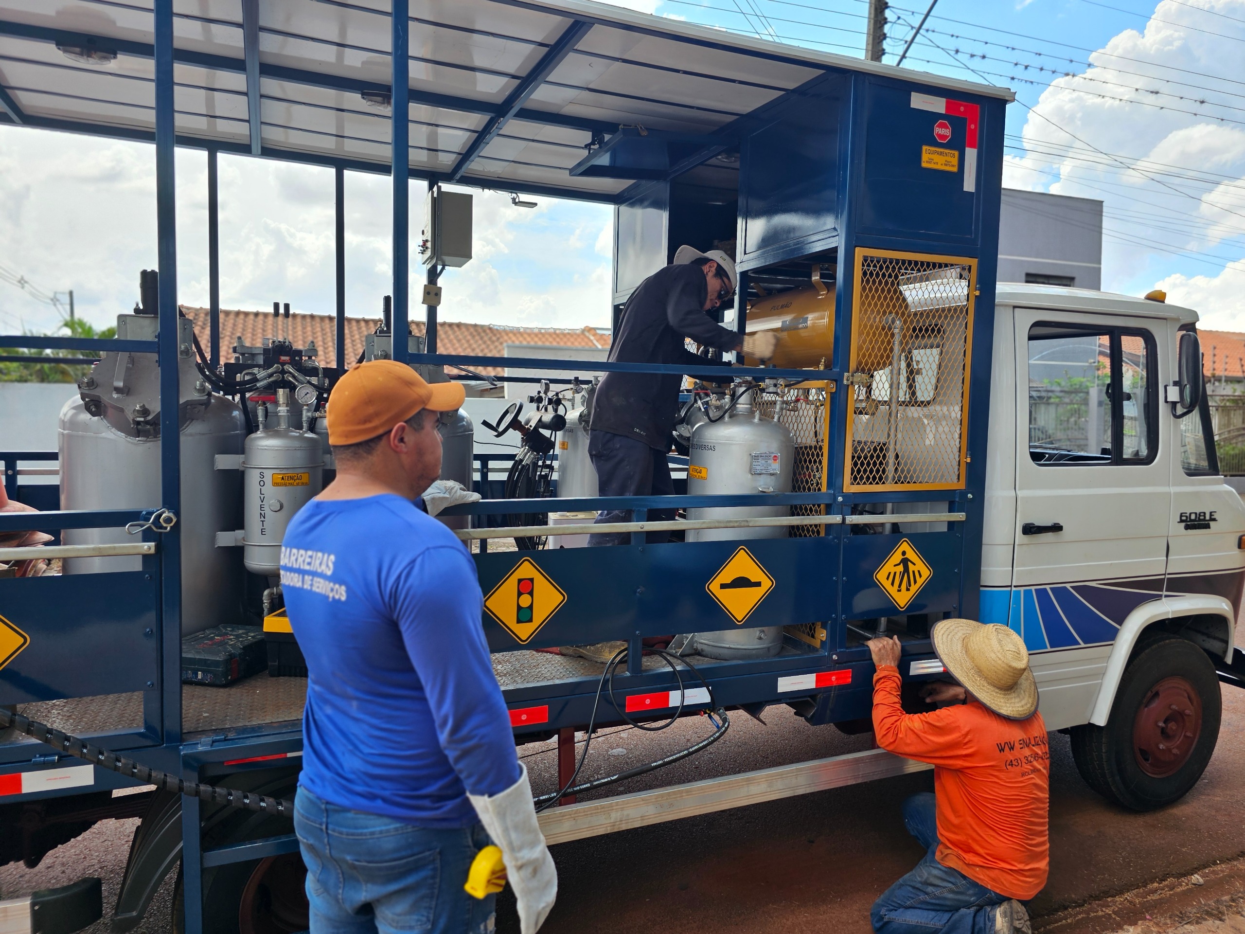 O equipamento é utilizado para realizar as marcações de sinalização viária de forma horizontal. O item é desenvolvido com alta tecnologia, o que o torna extremamente prático e muito eficiente.