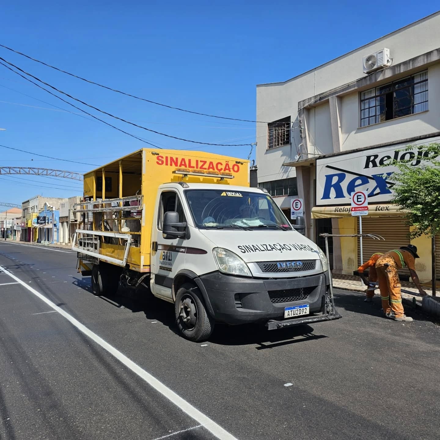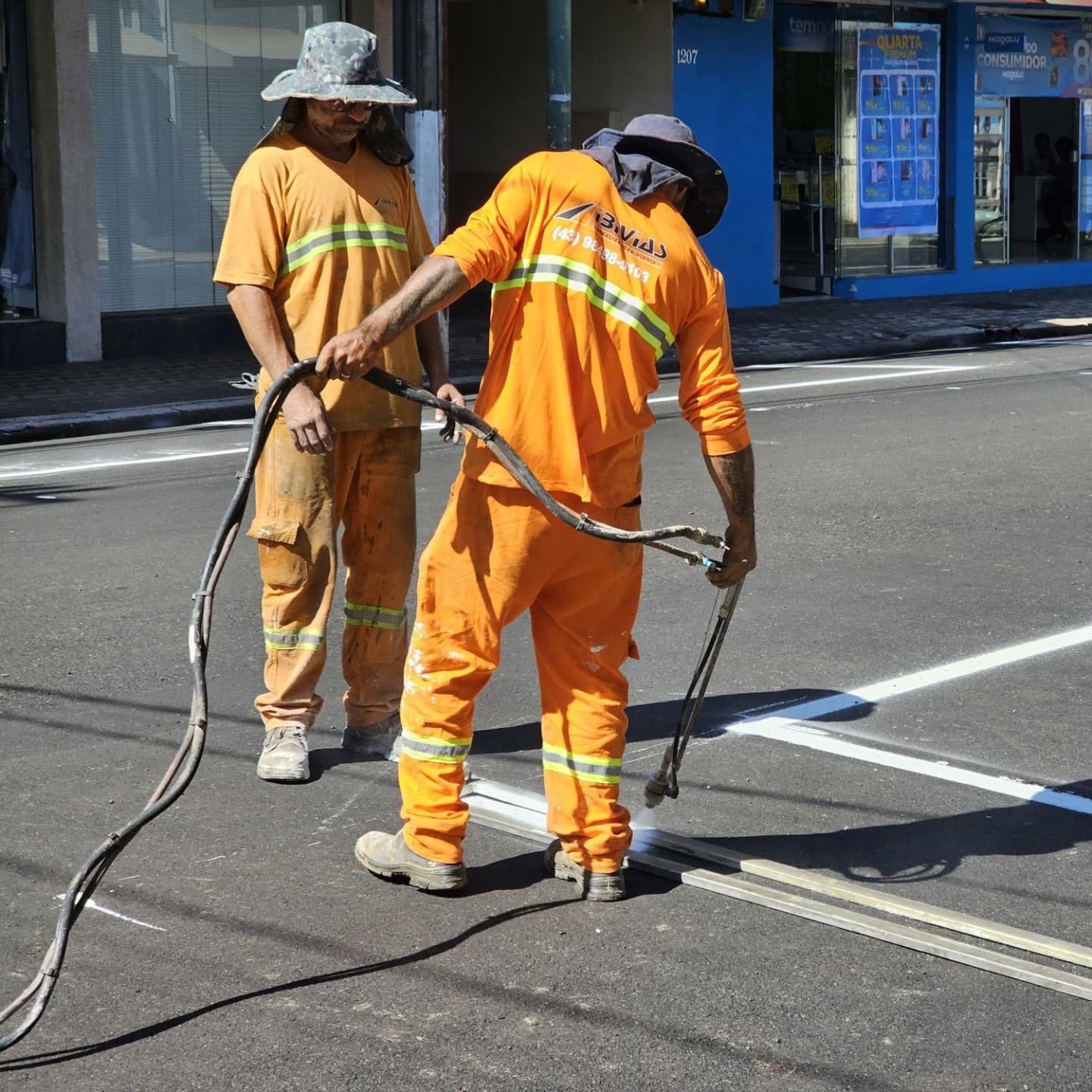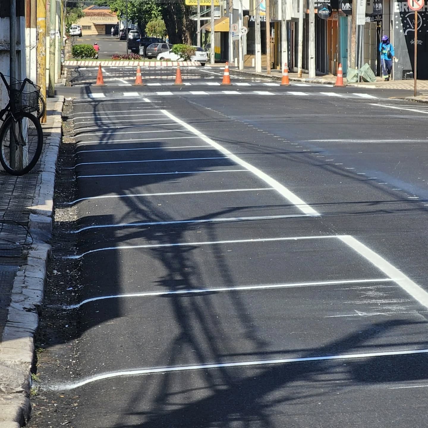 A pintura dos novos tipos de vagas de estacionamento começou nesta quarta-feira (19), aproveitando o feriado municipal do Dia do Padroeiro da cidade, São José.