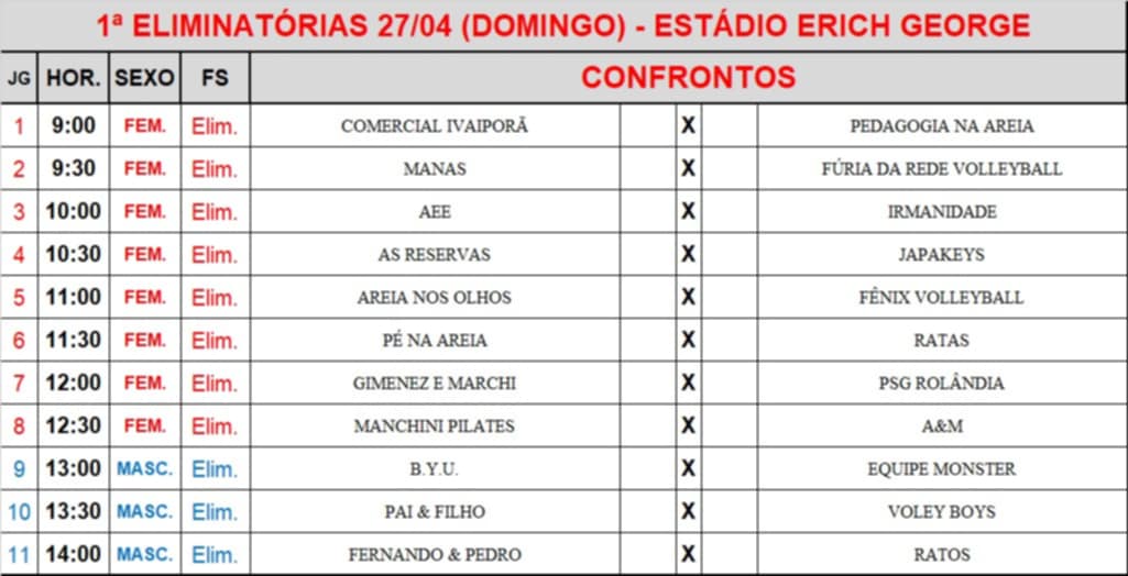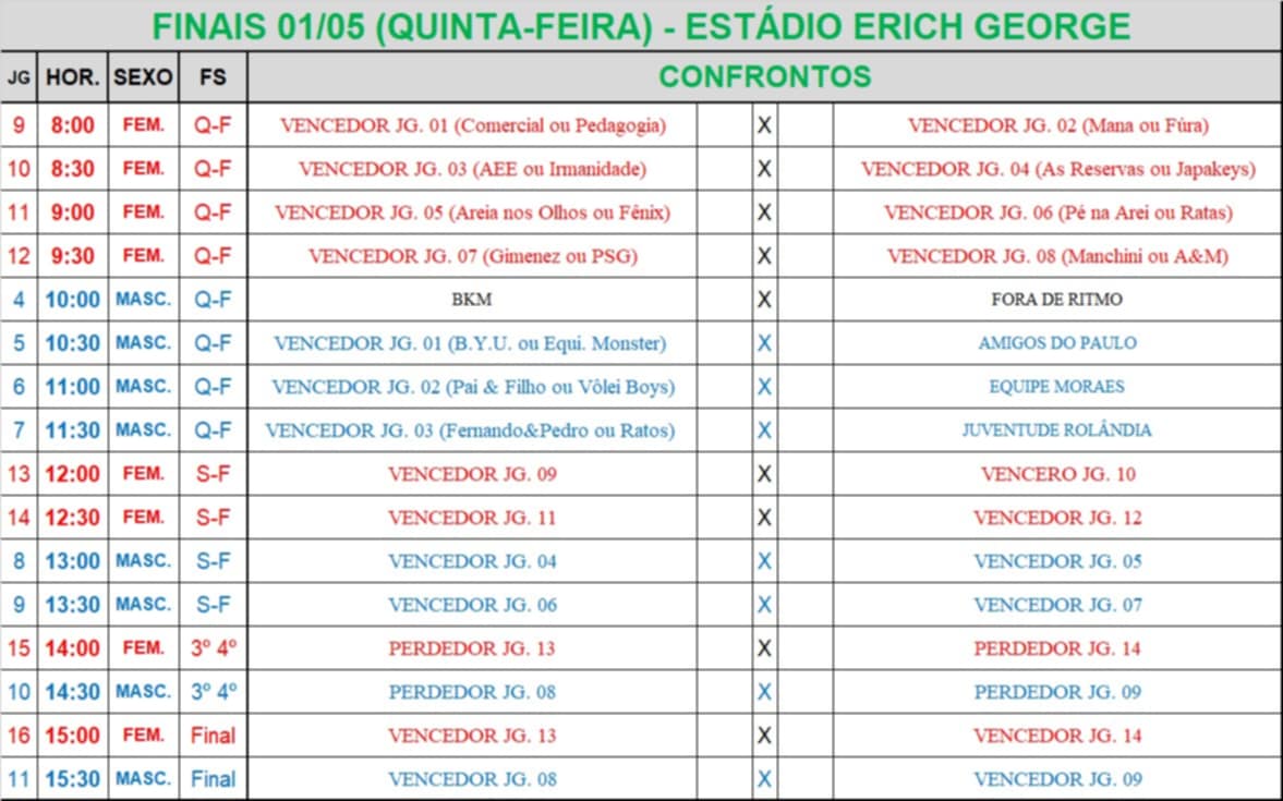 A secretaria de Esportes informa que 42 times estão inscritos para o Torneio do Trabalhador - 1° de maio, categoria livre. Já para a categoria “máster”, foram cinco times inscritos.