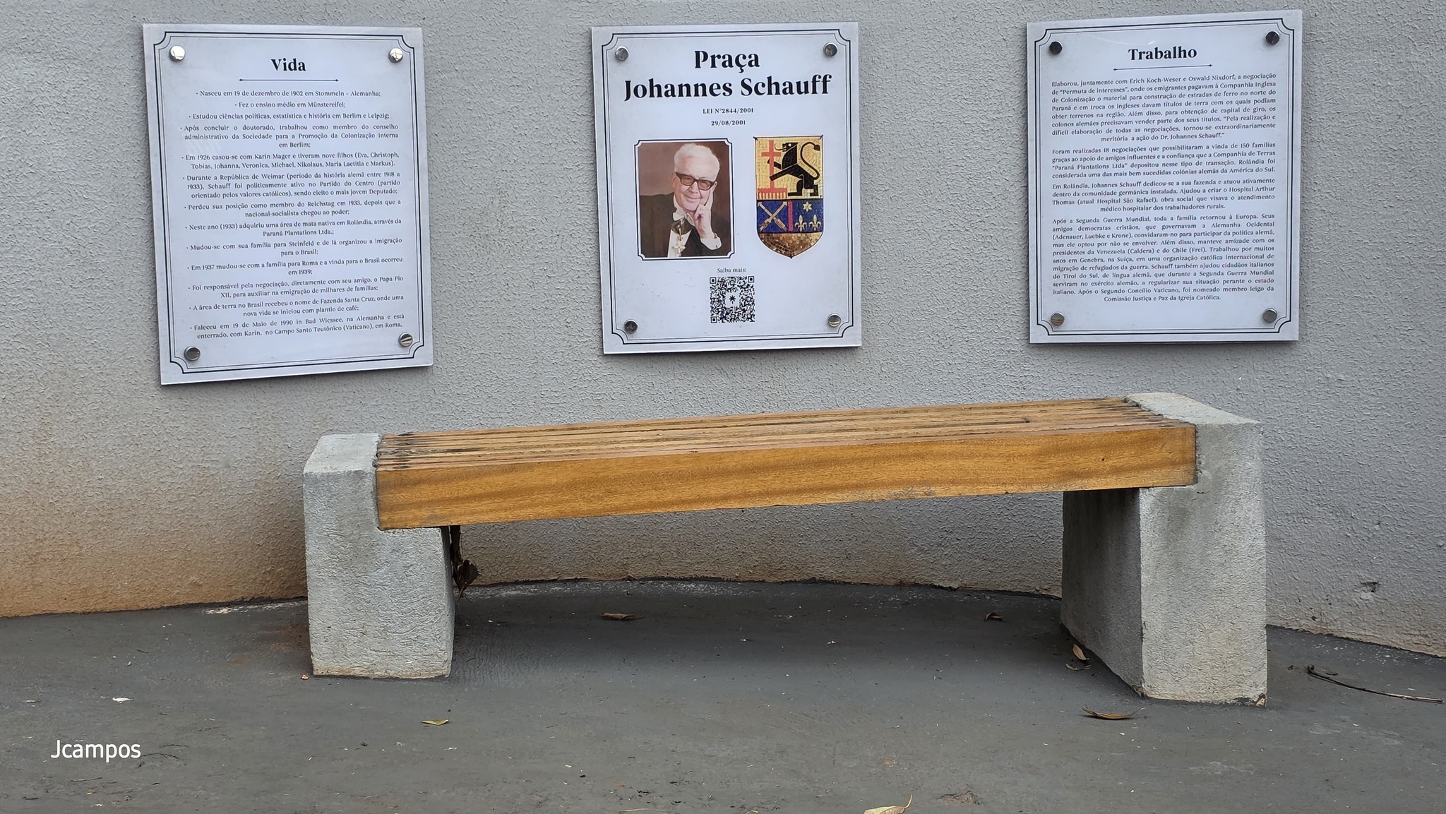 No Bosque, há placas que contam a bela e inspiradora trajetória de Johannes Schauff e um QR Code, com outras informações.