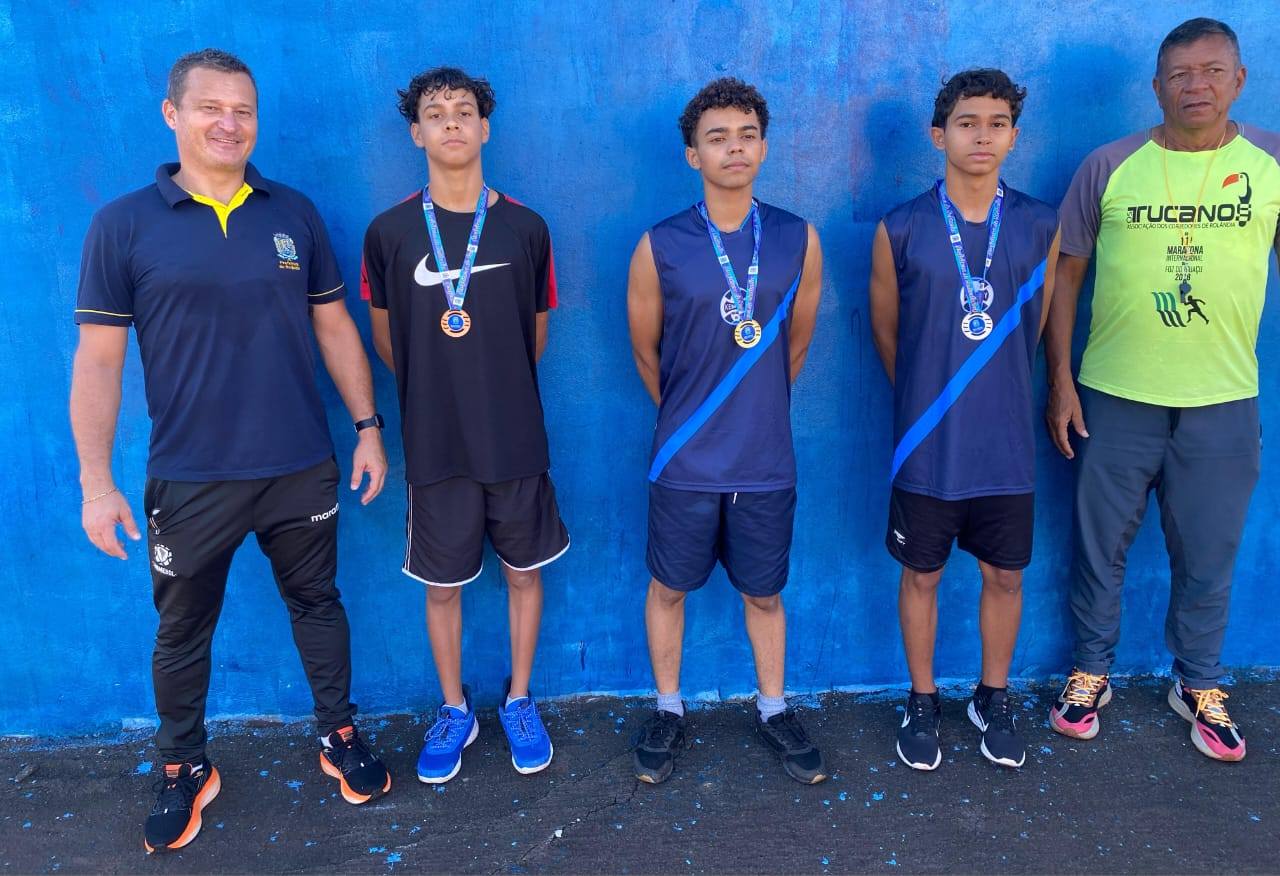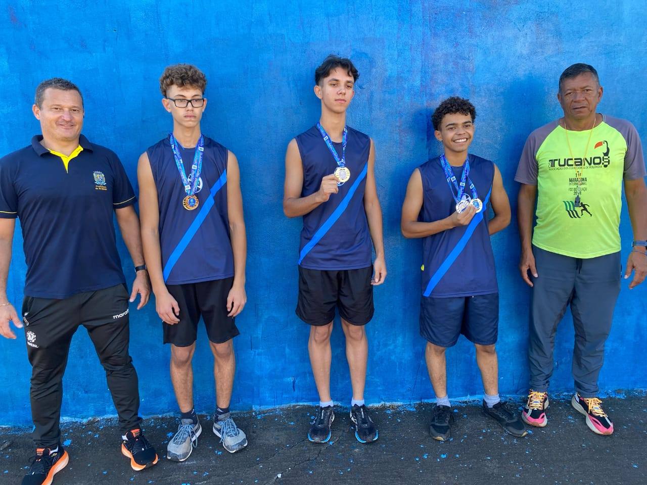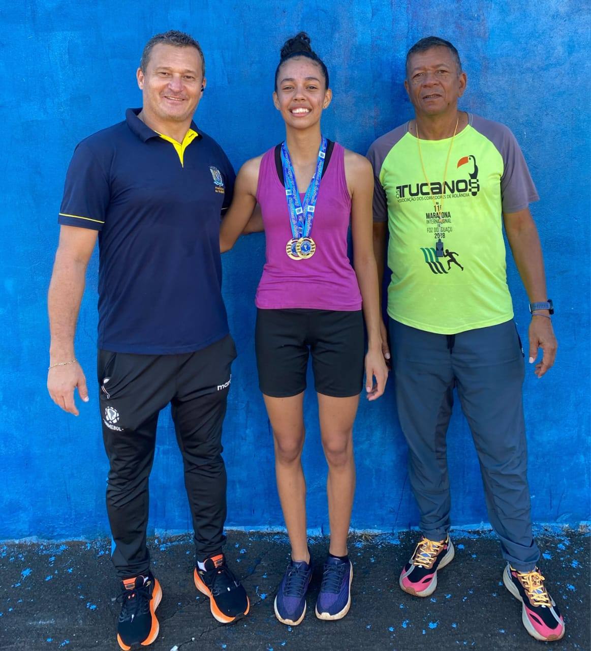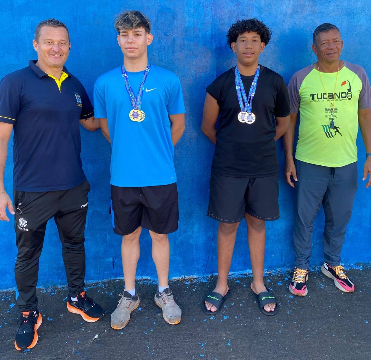 O diretor da secretaria, Flávio Marques, e o técnico de Atletismo, Ivar “Tucano” Benazi, fizeram a premiação da modalidade.