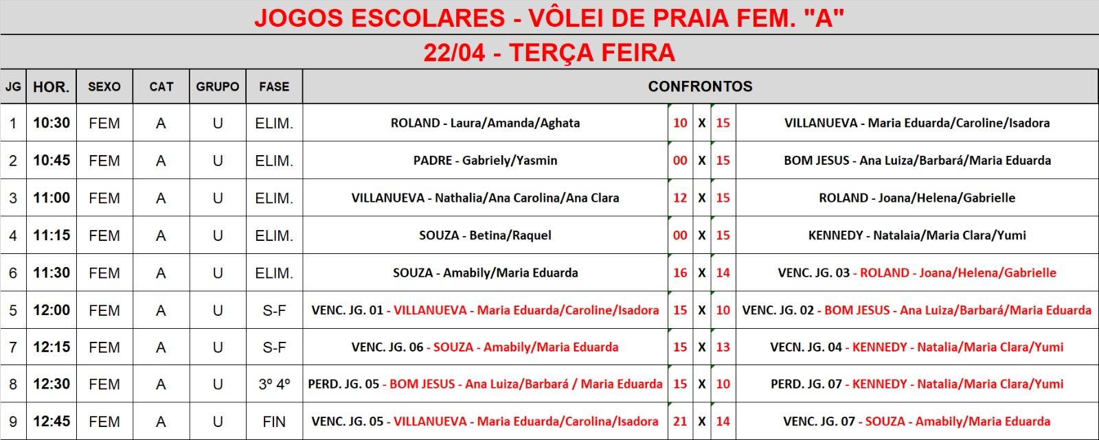 A Prefeitura de Rolândia, por meio da Secretaria de Esportes, informa que foi finalizada a fase municipal dos Jogos Escolares, na modalidade vôlei de areia.