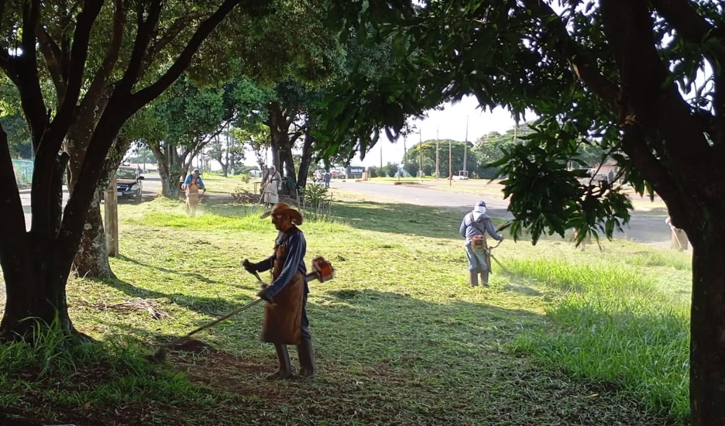 As secretarias de Infraestrutura e de Serviços Públicos, e a empresa terceirizada Sanetran, realizam os serviços de limpeza e roçagem em trechos dos canteiros da Estrada Rolândia-Pitangueiras.