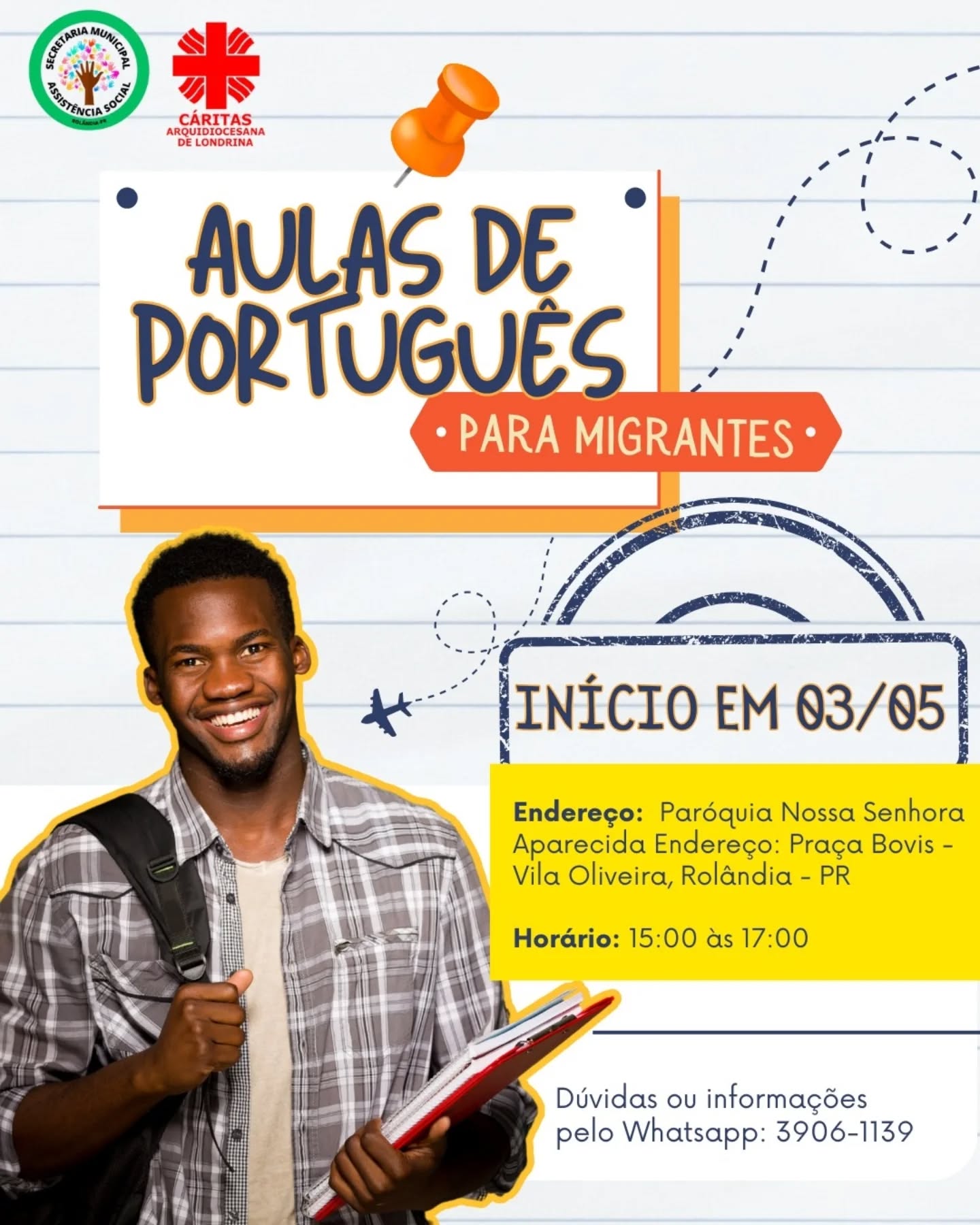 A Secretaria de Assistência Social, em parceria com a Cáritas Arquidiocesana de Londrina, tem a alegria de anunciar que estão abertas as inscrições para a primeira turma de aulas de português para migrantes!