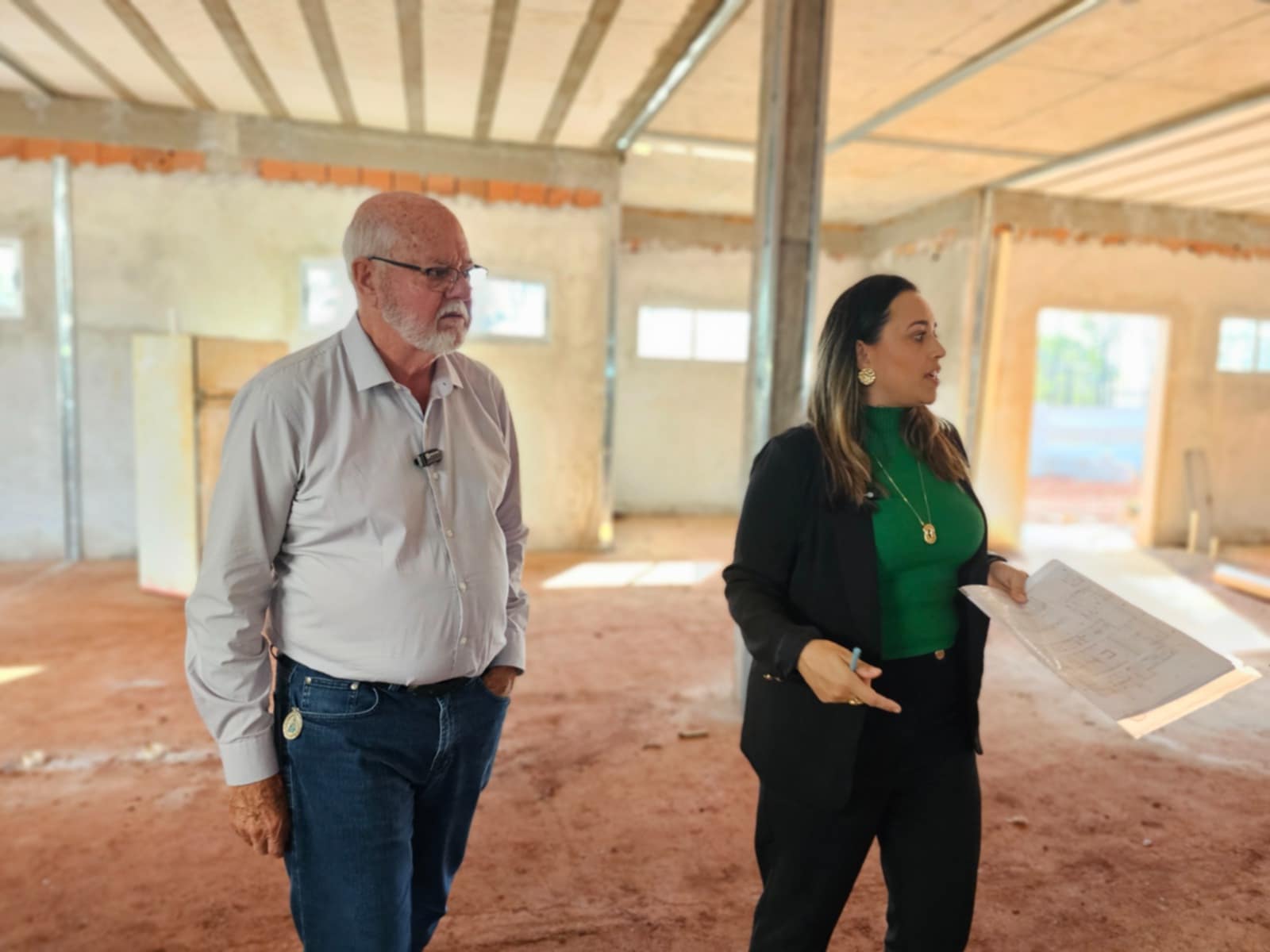 O prefeito Ailton Maistro e a secretária de Saúde, Érika Bezerra Ludwig, foram conferir o andamento da construção.