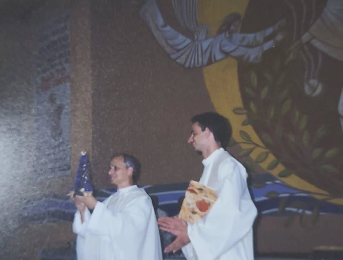 Na foto, com Frei Maciel Alves Bueno, rolandense que hoje evangeliza na capital do Paraná.