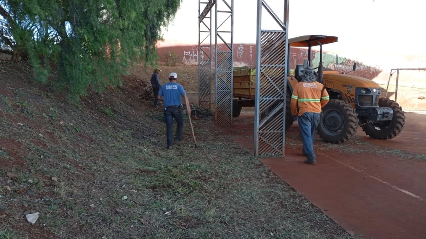 Equipes das secretarias de Infraestrutura e de Serviços Públicos estão fazendo a limpeza, adequações e roçagem em áreas institucionais no Domingos Neves, perto da Biblioteca Cidadã, na quadra esportiva, inclusive com a melhoria no paisagismo, com a poda de árvores. Além disso, em outras áreas institucionais do entorno.