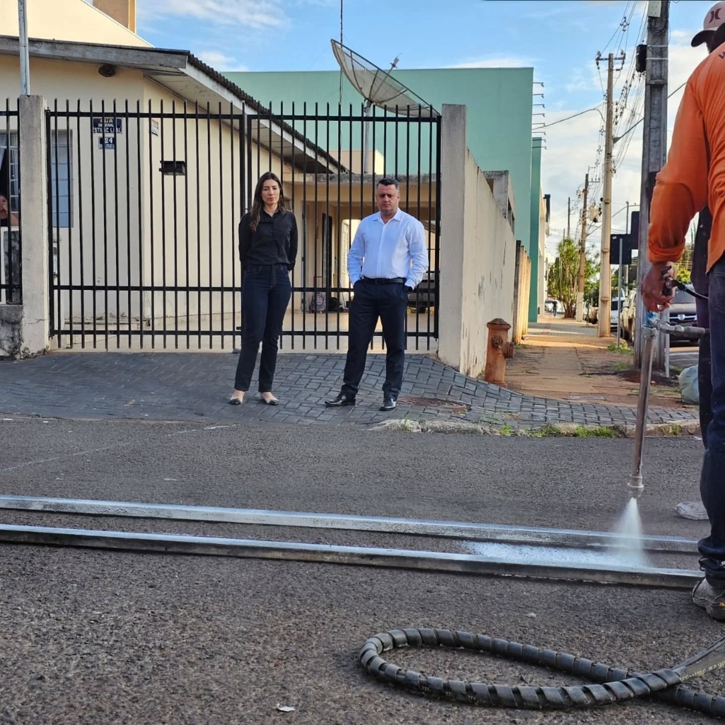 O secretário de Segurança Pública, Trânsito e Mobilidade Urbana, Isaac Altino, e a engenharia da secretaria de Planejamento, Adriana Takaoka Linhares, estiveram nos dois locais acompanhando os serviços.