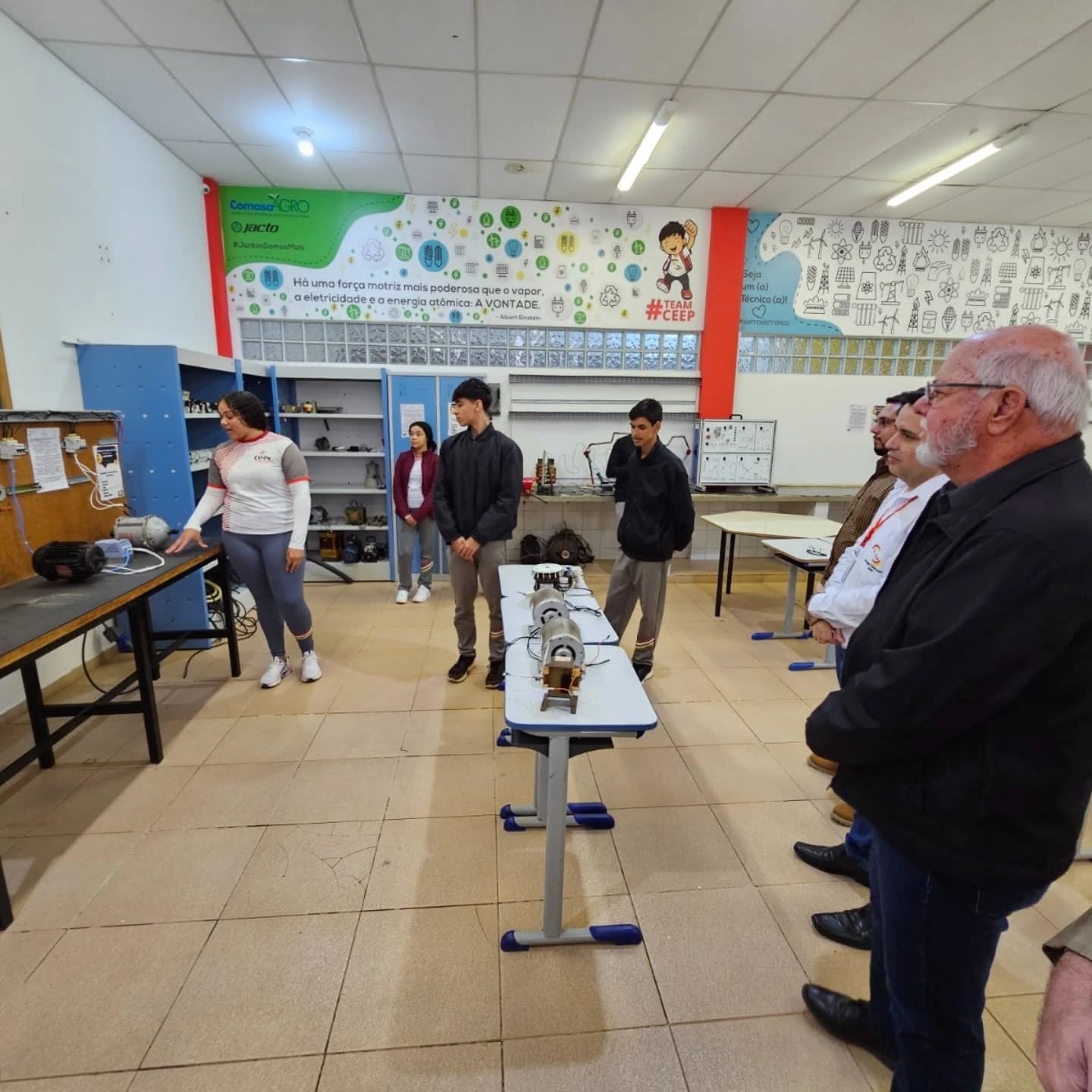 Nesta quarta-feira, dia 28 de maio, o prefeito Ailton Maistro, o vice-prefeito Horácio Negrão, o secretário de Desenvolvimento Econômico, Alexandre Farina, visitaram o Centro Estadual de Educação Profissional (CEEP) Maria Lydia Cescato Bomtempo, em Assaí.