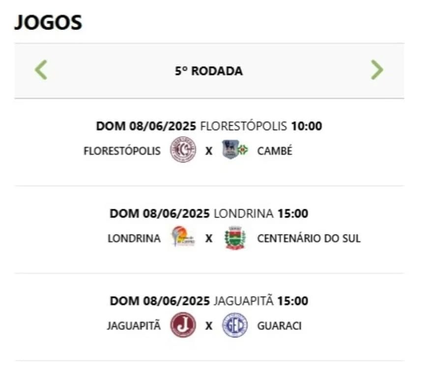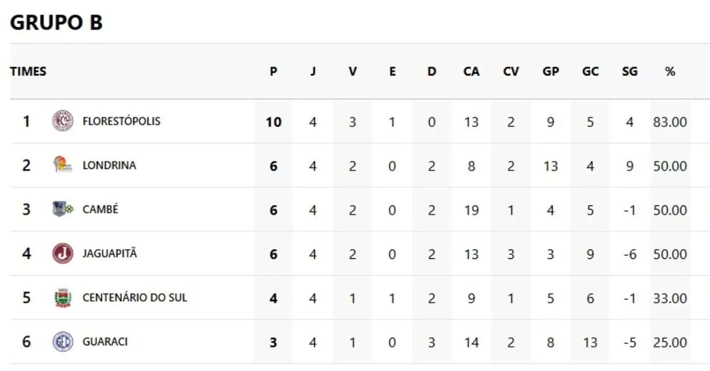 Até aqui, o time de Rolândia tem quatro jogos e quatro vitórias: 3x1 Tamarana, Porecatu (5x2), Prado Ferreira (3x0) e Sabáudia (5x3). É o único 100% de aproveitamento no certame.