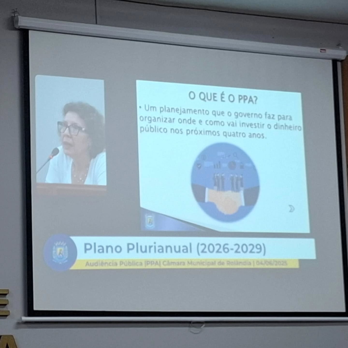 A Prefeitura de Rolândia, por meio da secretaria de Finanças, com apoio da Câmara Municipal de Rolândia, por meio da Comissão da Ordem Econômica e Social, realizou a SEGUNDA de uma série de quatro audiências públicas, com a organização do Departamento de Orçamento, para a elaboração da Lei do Plano Plurianual (PPA) de 2026 - 2029, que é um instrumento de planejamento de médio prazo com as diretrizes, objetivos e metas para o município.