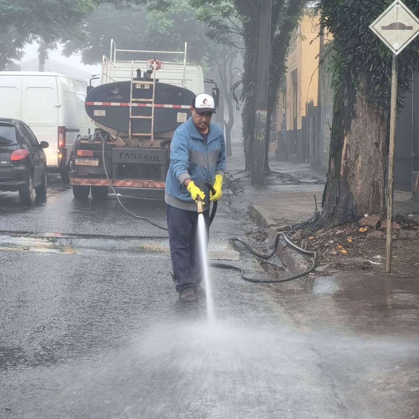 Na manhã desta sexta-feira, dia 6, equipes das secretarias de Infraestrutura e de Serviços Públicos estão fazendo o serviço emergencial de remoção, lavagem e limpeza em trechos da Avenida Ayrton Rodrigues Alves.