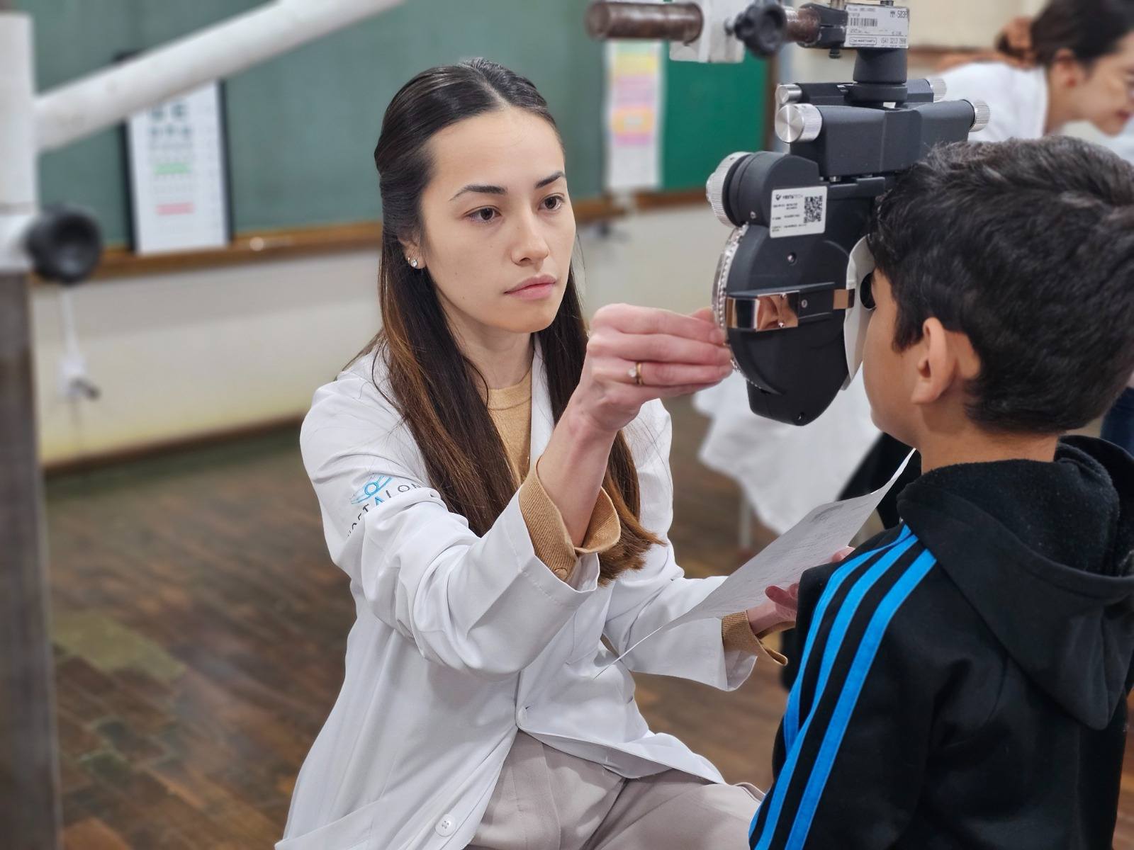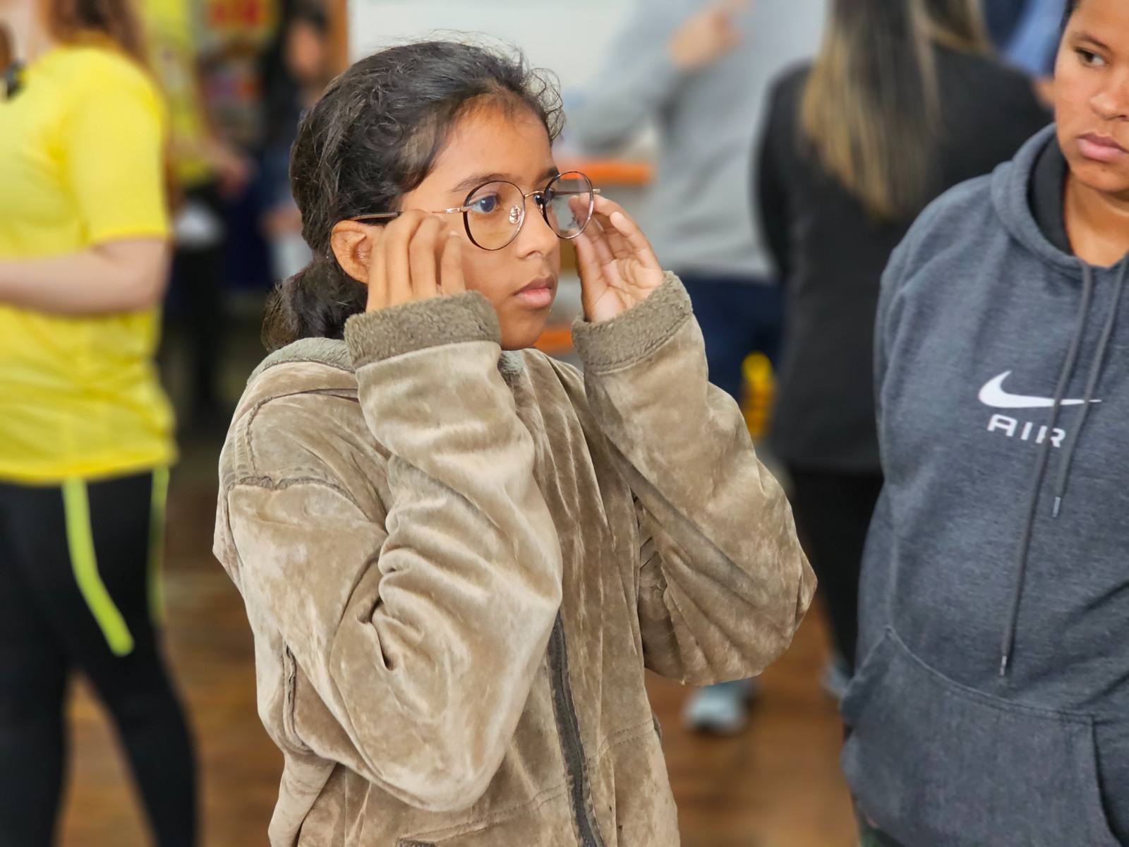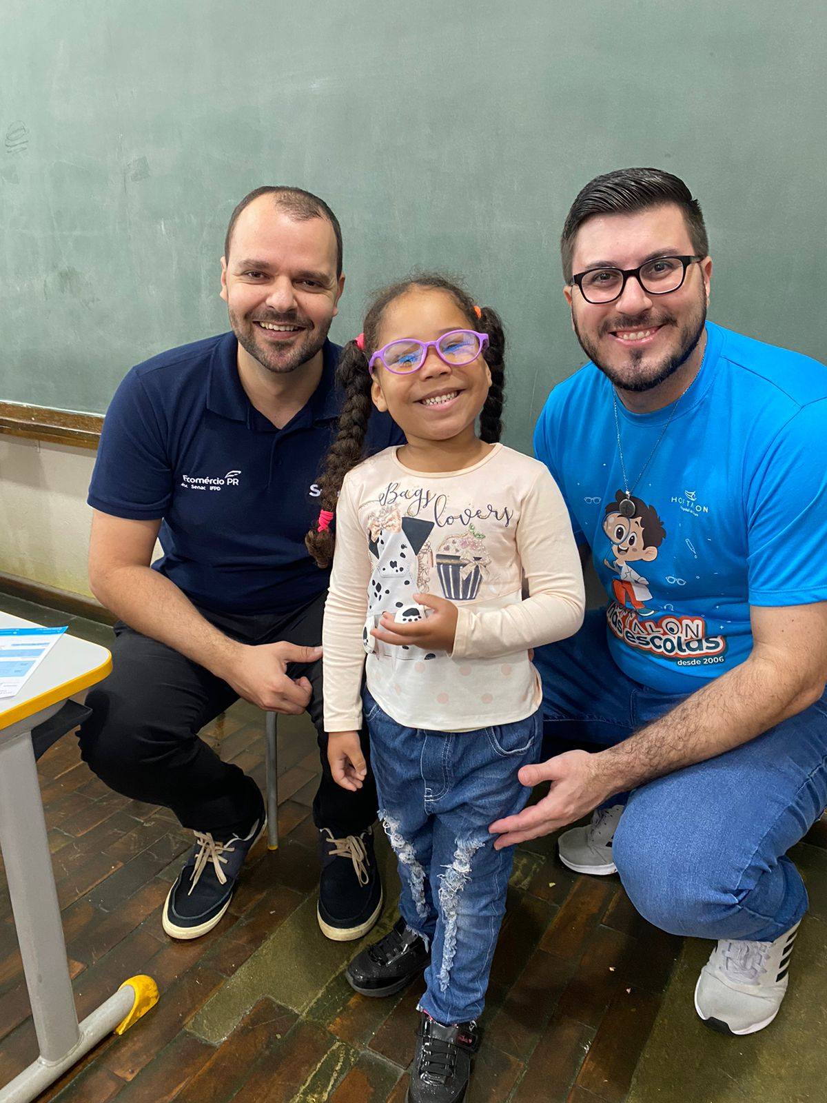 Após passar pela consulta e exames, os alunos que necessitam, vão ganhar a armação da Ótica Mercadão dos Óculos e a lente do SENAC.