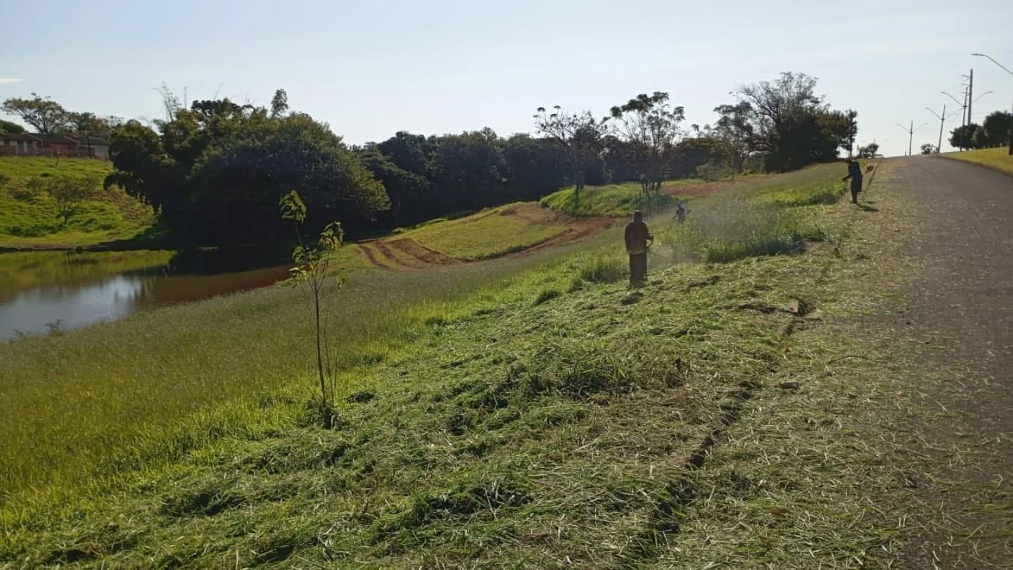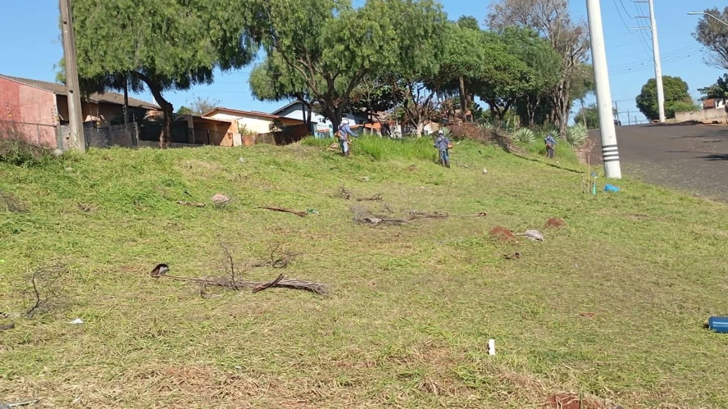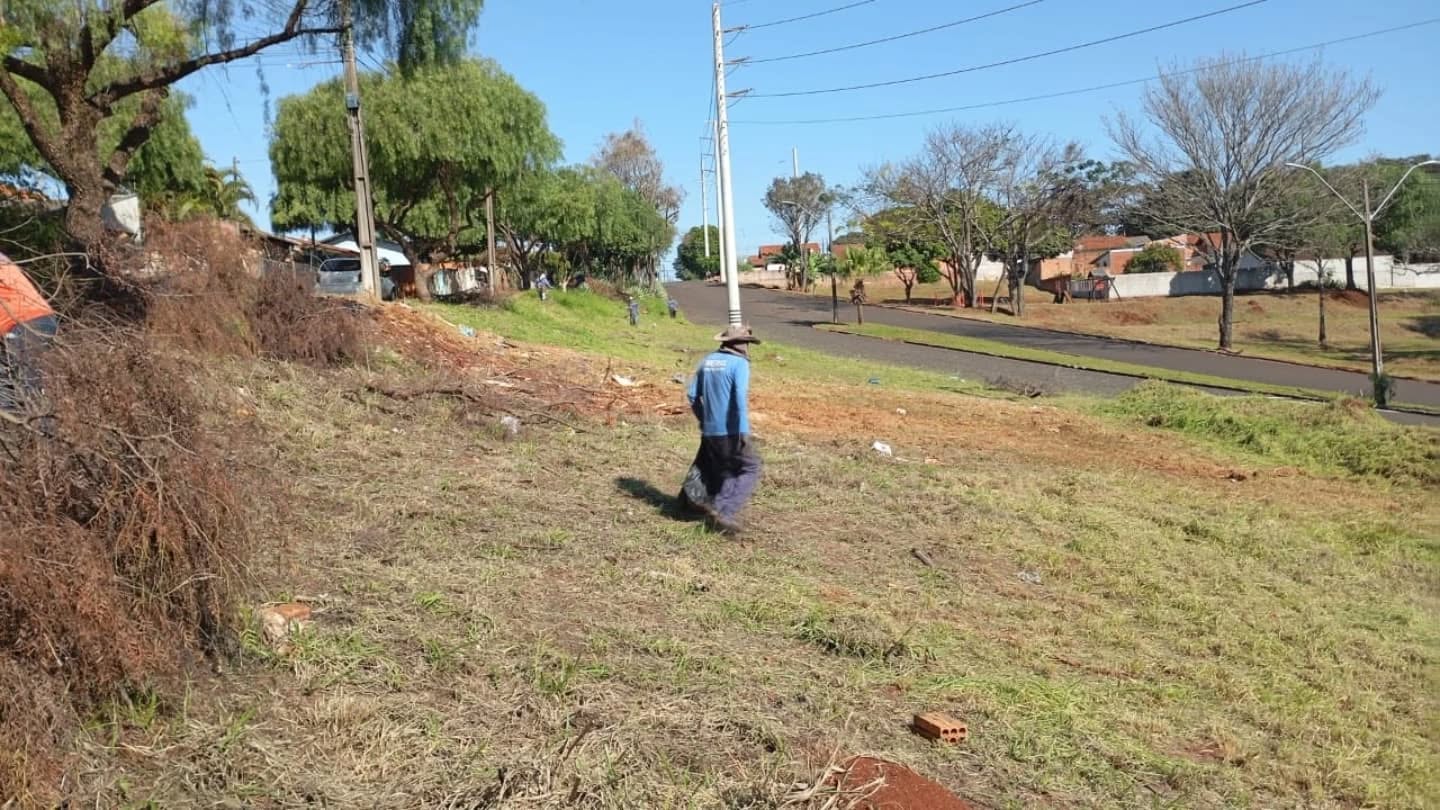 Equipes das Secretarias de Infraestrutura e de Serviços Públicos promovem um grande mutirão de limpeza e roçagem em áreas dos Jardins Santiago, Coliseu e Jardim do Lago.