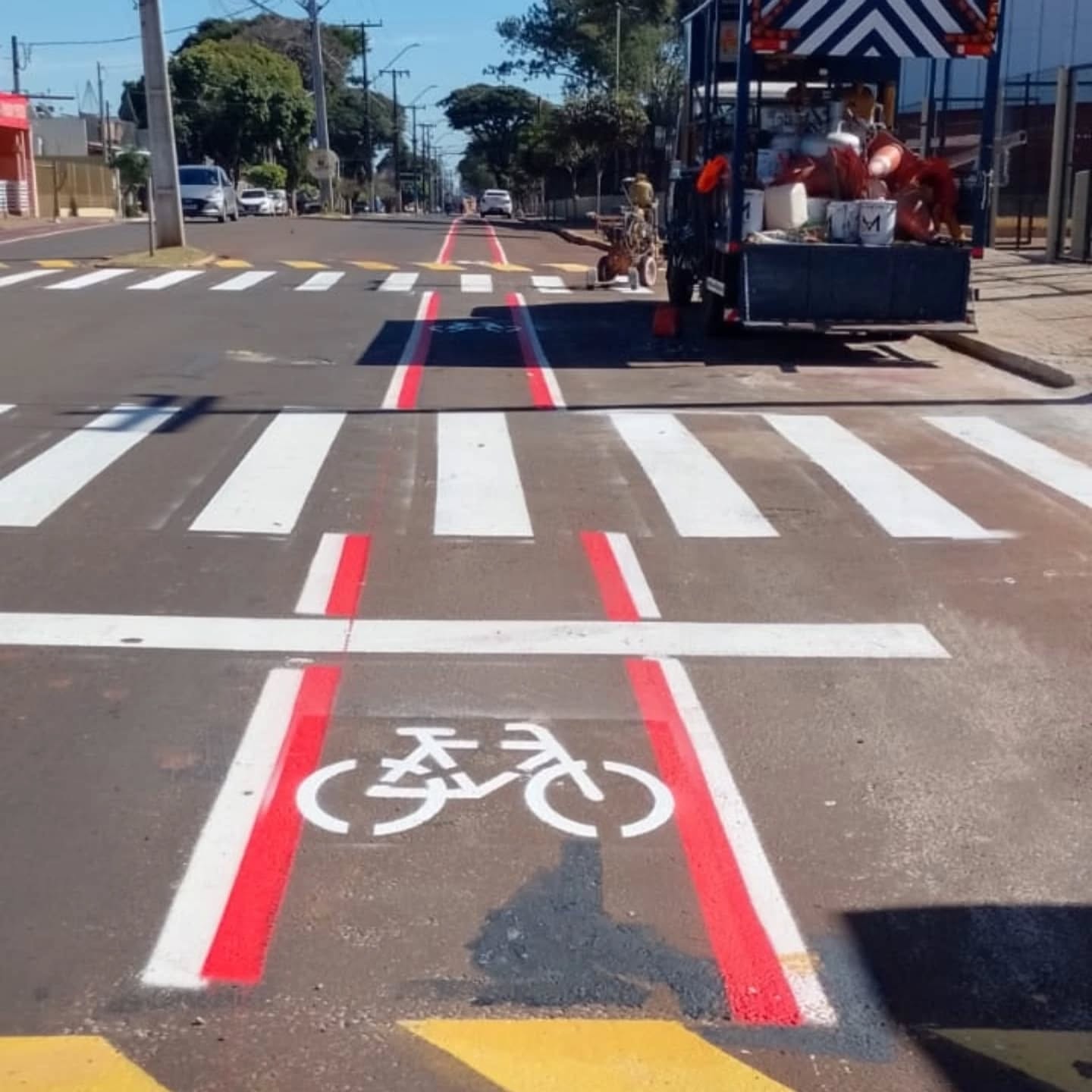 Estão sendo marcadas as vagas de estacionamento, melhoria na sinalização de trânsito e o reforço na delimitação da ciclovia.