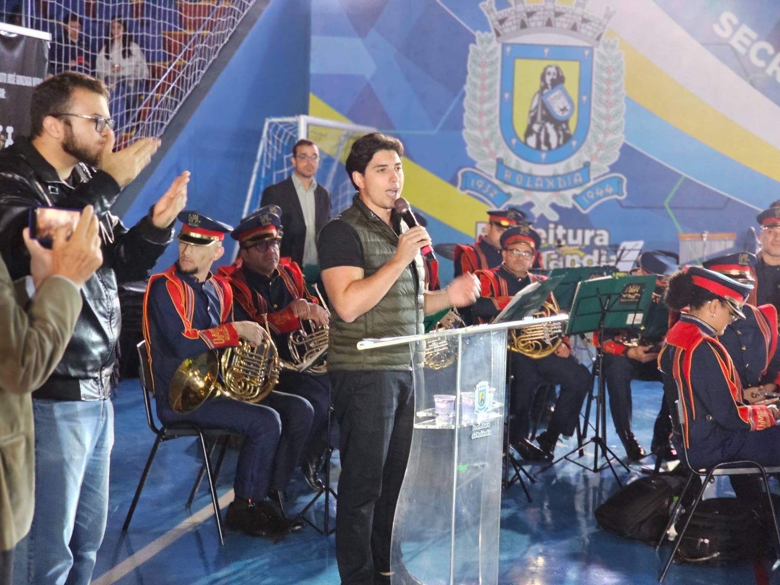 Foi um momento histórico e inesquecível! E agora o ginásio está pronto para valorizar, unir e alegrar a comunidade esportiva rolandense! Padre Rodrigo Nunes dos Santose oPastor Silas de Souza conduziram um Ato Ecumênico e levaram uma mensagem de fé aos presentes, e proferiram palavras proféticas para que o Ginásio Emilio Gomes seja um local de paz, união, convivência e vitória para todos.