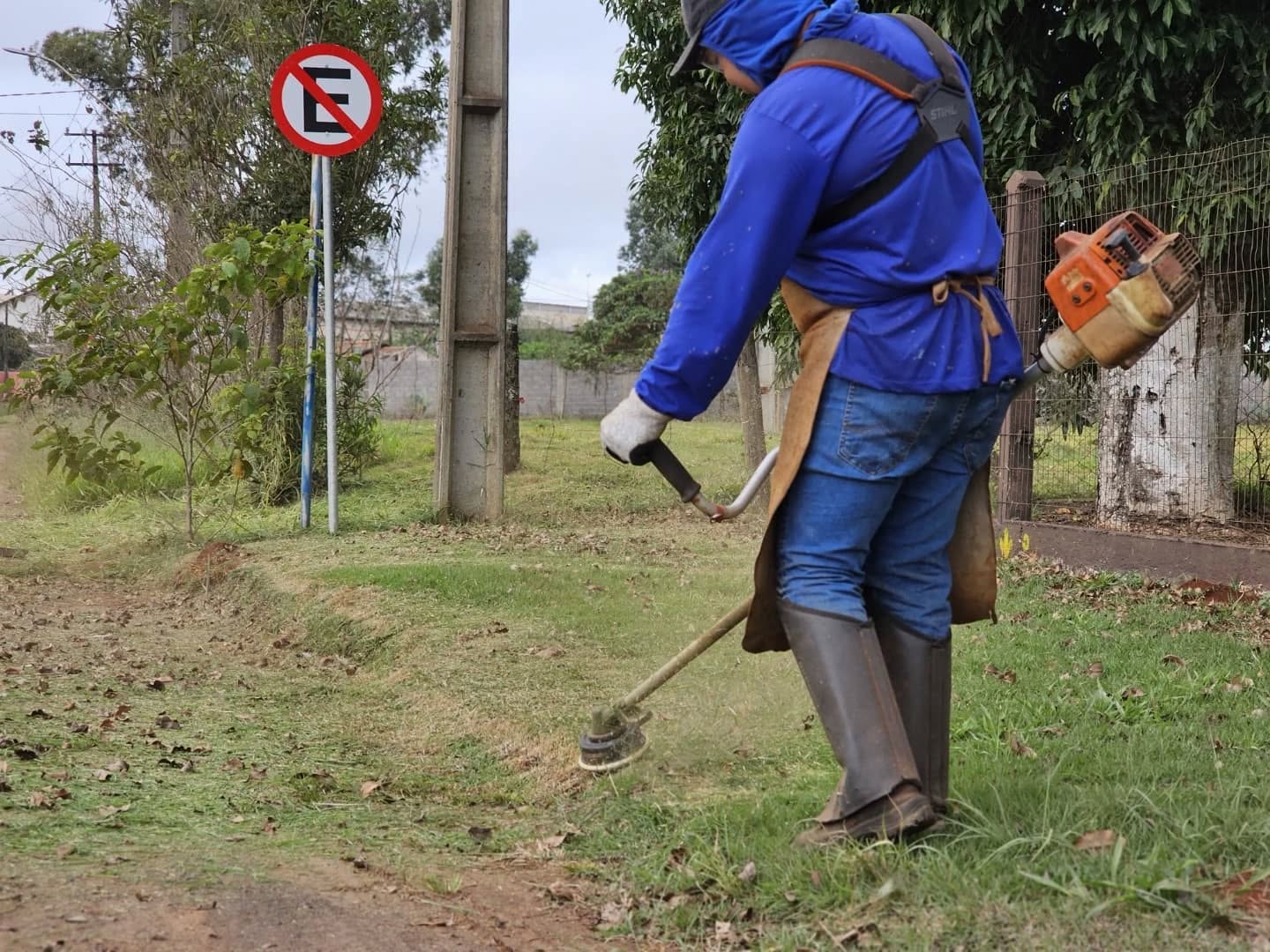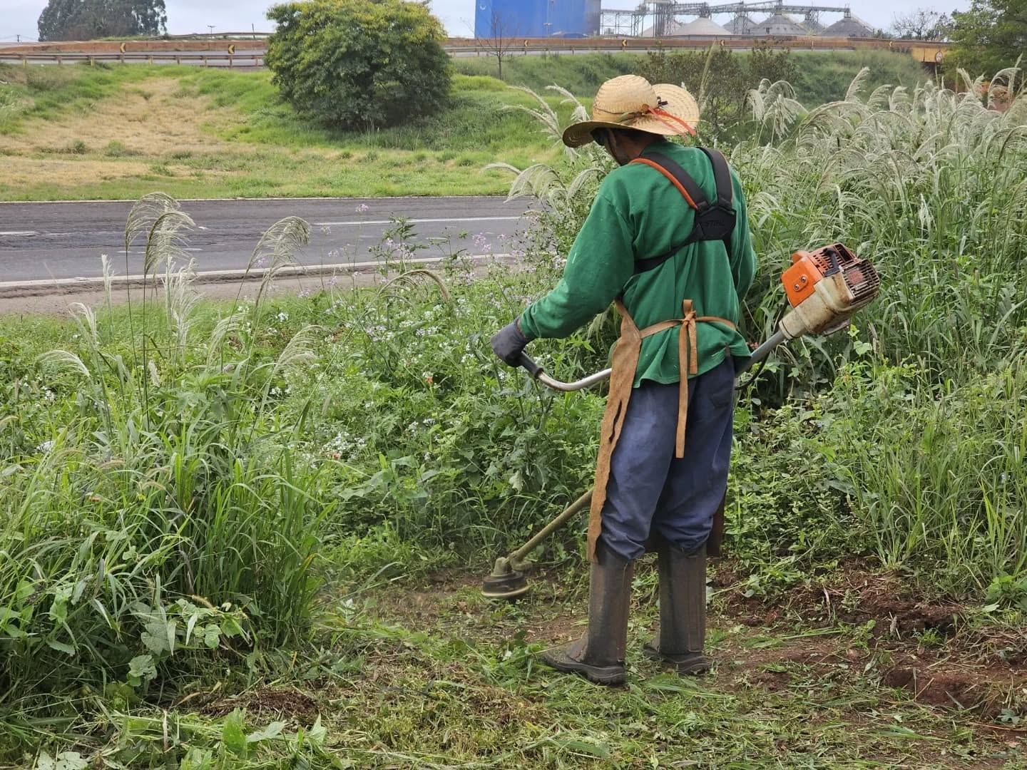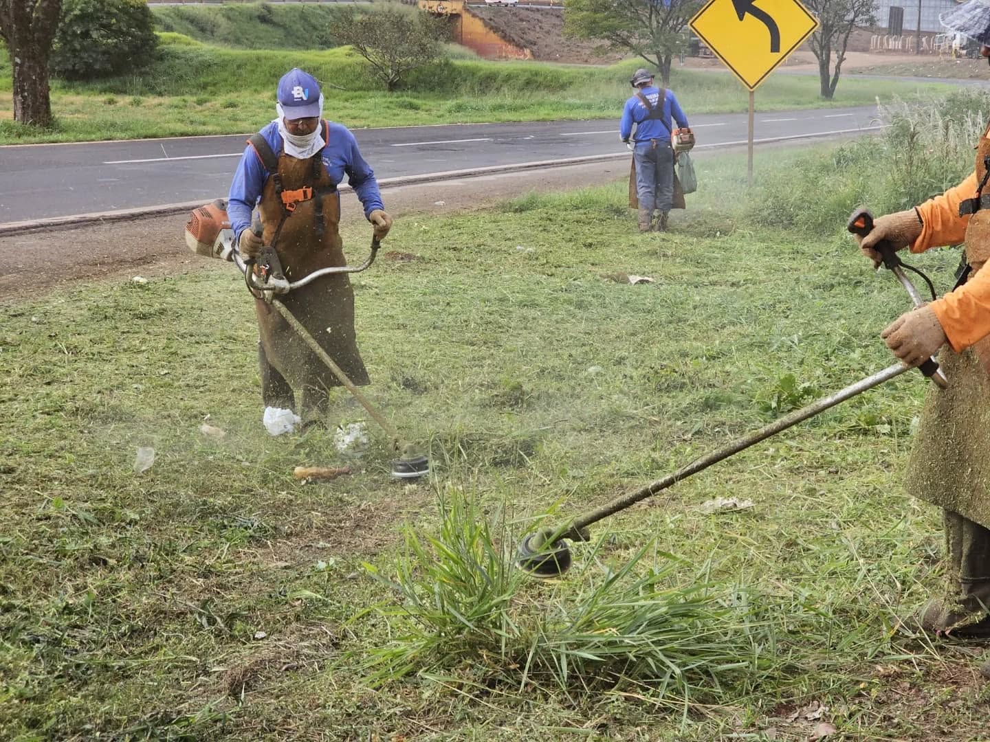 Equipes das Secretarias de Infraestrutura e de Serviços Públicos promovem um grande mutirão de limpeza e roçagem na Avenida das Perobas, Gleba Três Bocas.