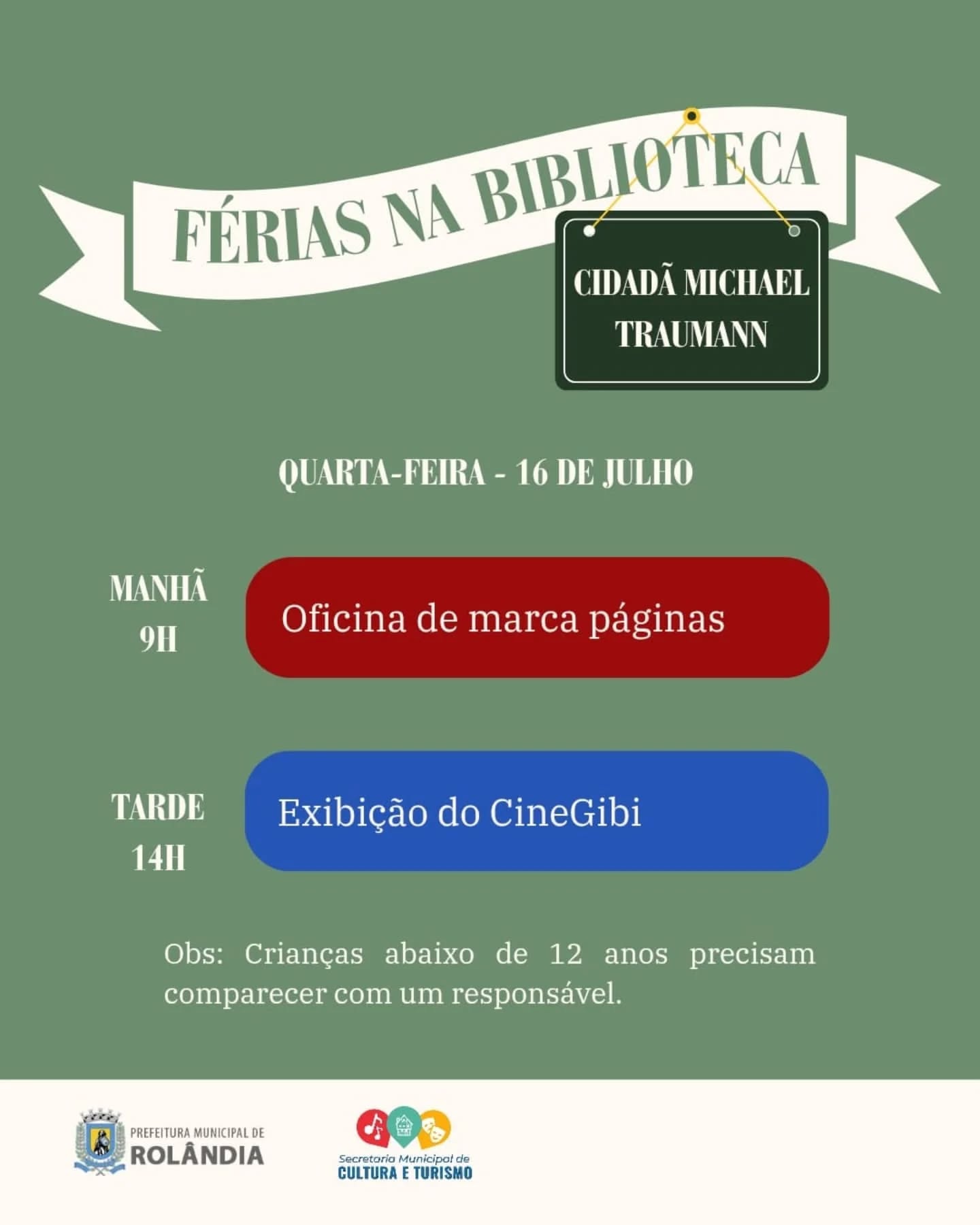Nesta quarta-feira, dia 16 de julho, último dia de férias de rede municipal de ensino, uma programação especial será feita às crianças.
