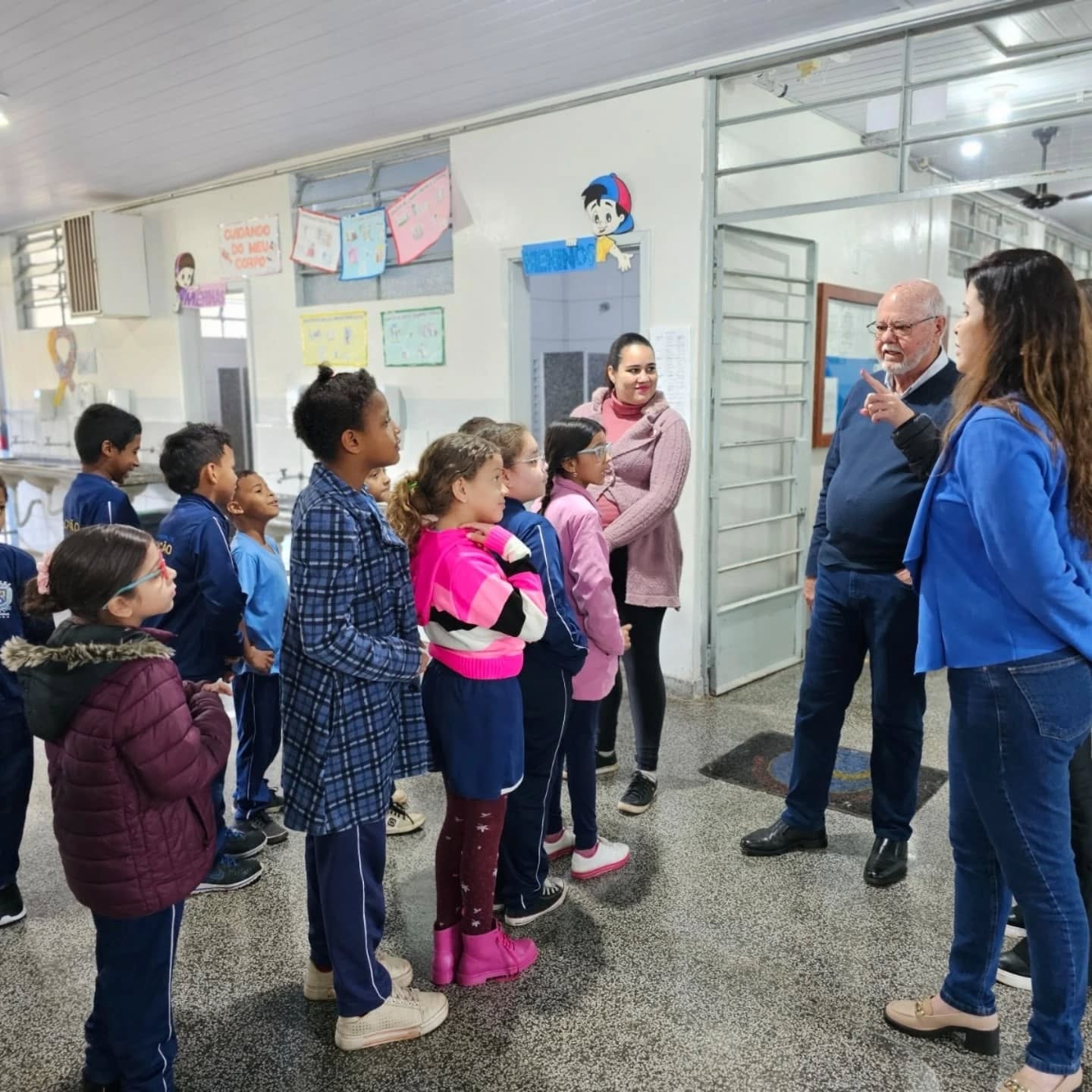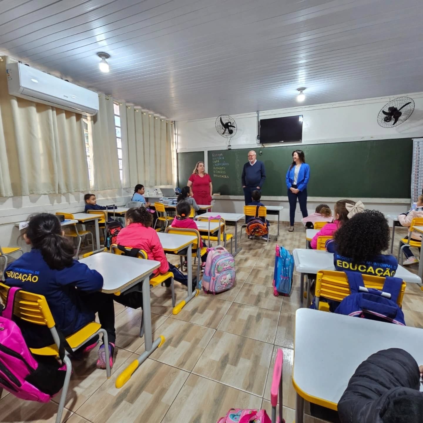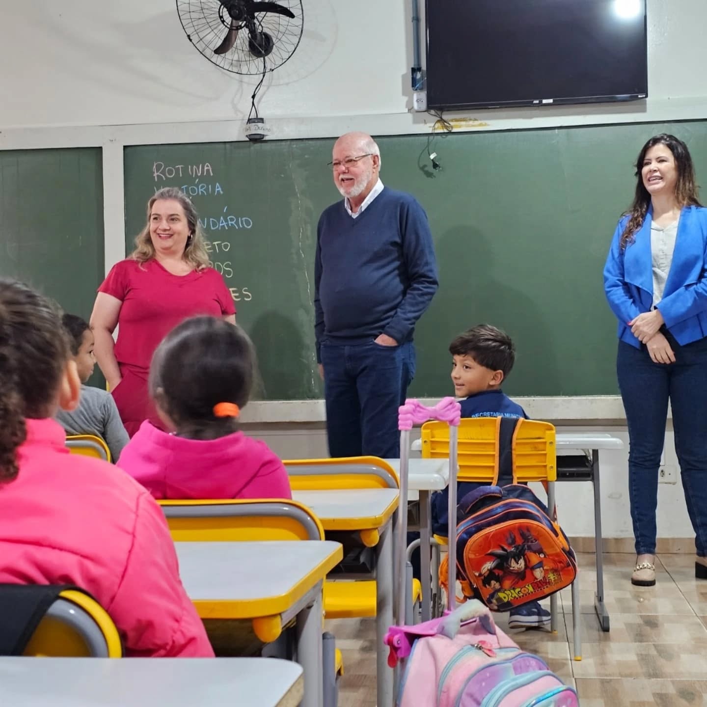 O prefeito Ailton Maistro e a secretária de Educação, Leise Camargo visitaram a escola municipal Geralda Chaves Tiradentes, no Teresópolis, cuja diretora é Gisele Segatel, dando as boas vindas aos profissionais da Educação e aos alunos.