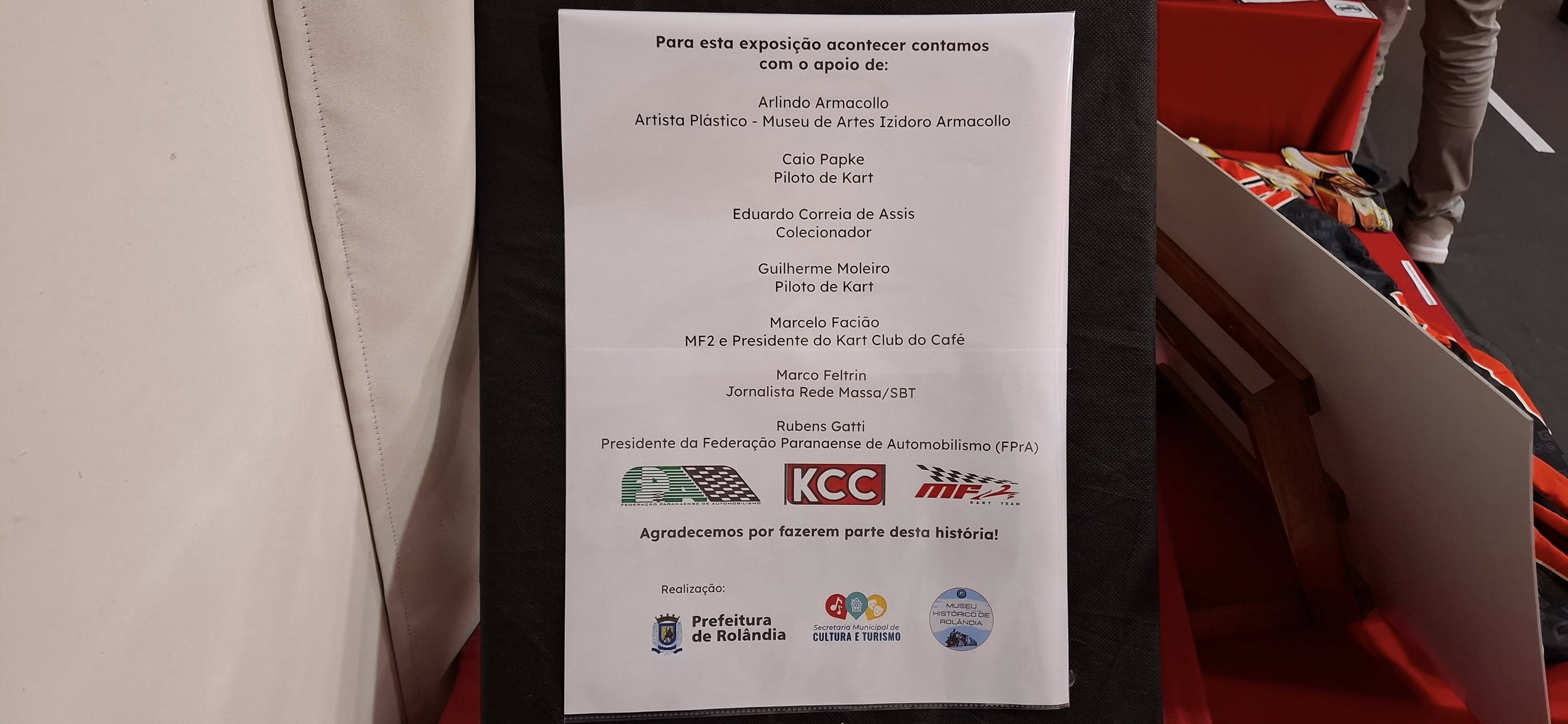 A mostra conta com o apoio de Marcelo Facião (KCC e MF2) e do rolandense Rubens Gatti, presidente da Federação Paranaense de Automobilismo.