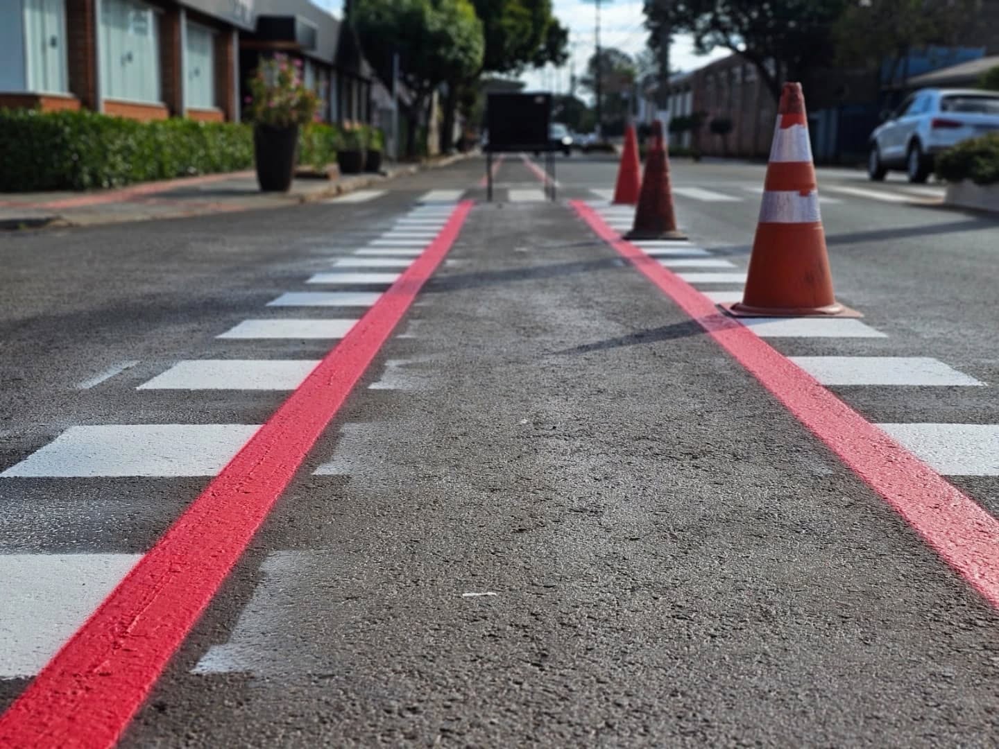 Estão sendo marcadas as vagas de estacionamento, melhoria na sinalização de trânsito e o reforço na delimitação da ciclovia.
