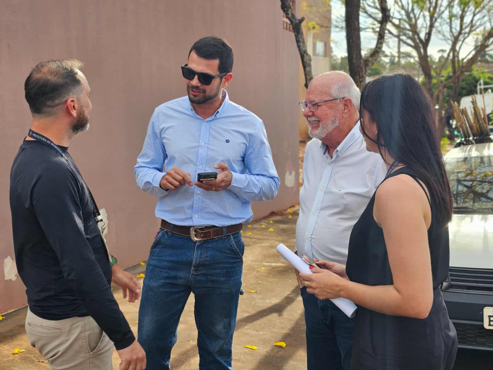 O prefeito Ailton Maistro, o secretário de Agricultura e Meio Ambiente, Lucas Schauff, o diretor de arborização, Miguel Consani Nogueira, o diretor Renan Andrade e a fiscal Alessandra Silva acompanharam o início dos trabalhos, no Jardim Água Verde, na tarde desta segunda-feira, dia 1º de setembro.