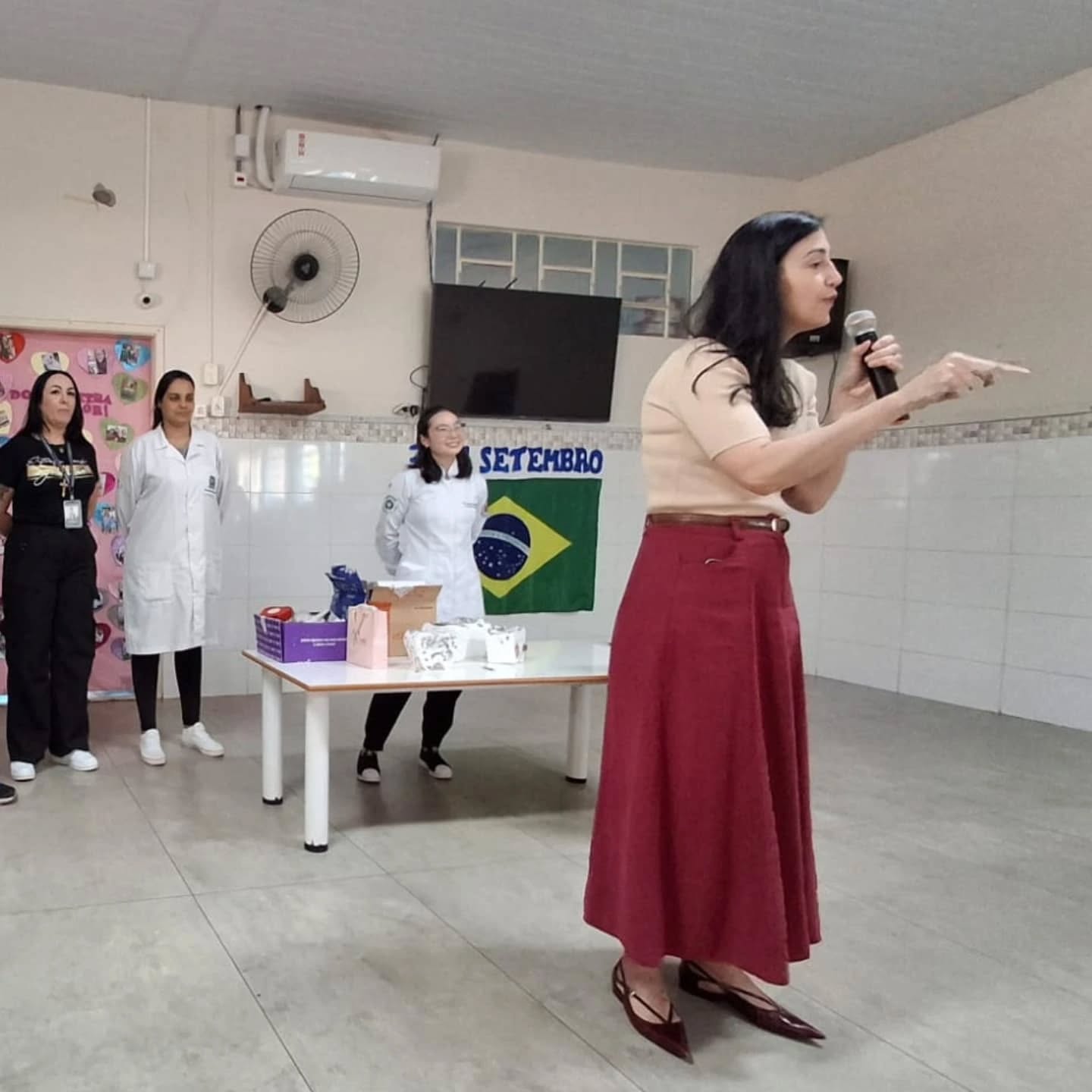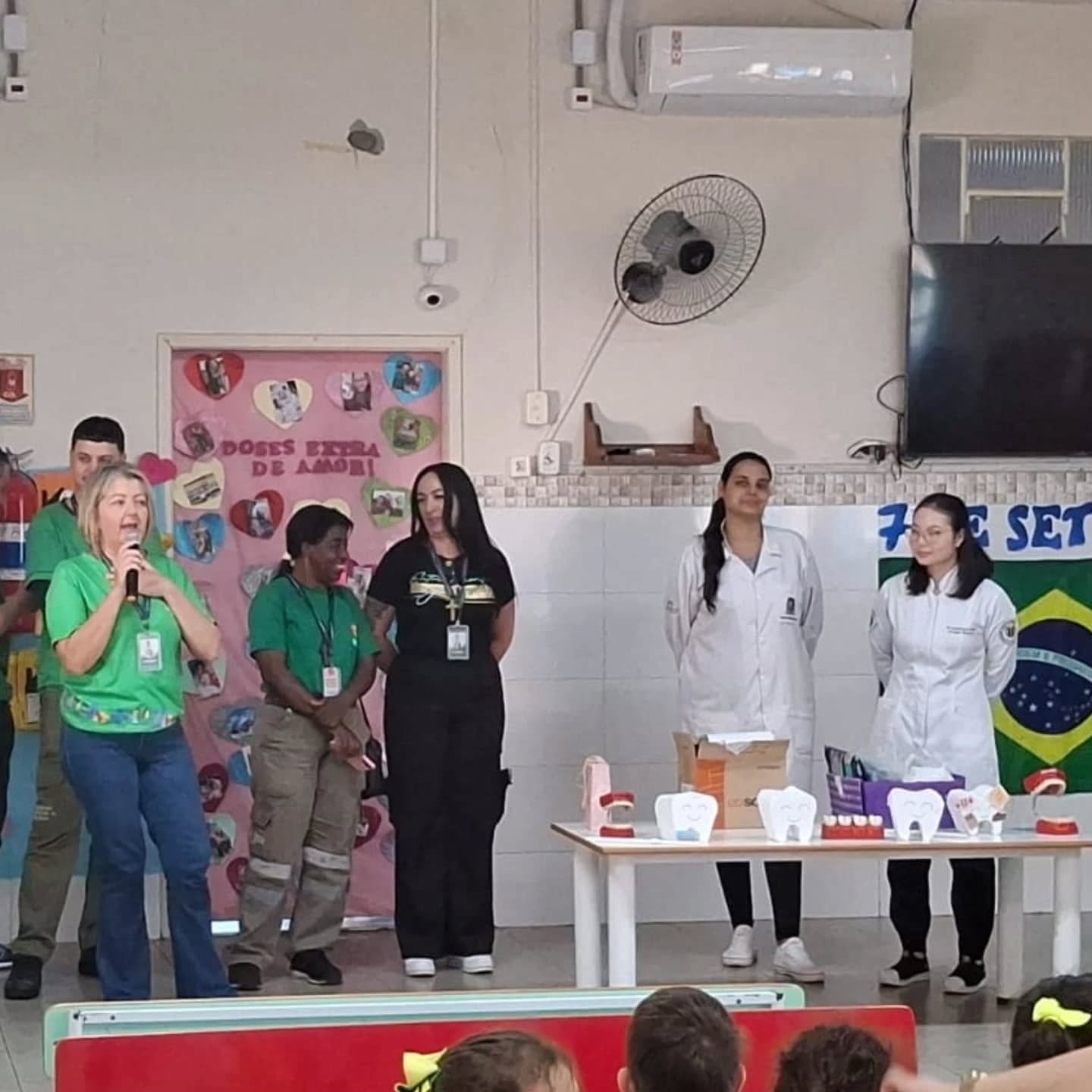 A ação levou orientações sobre higiene bucal e a importância da escovação e de passar fio dental aos alunos e para toda comunidade escolar.