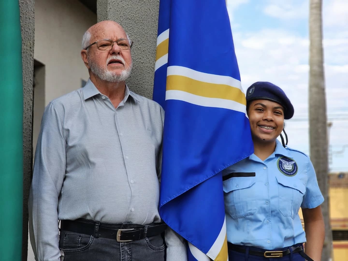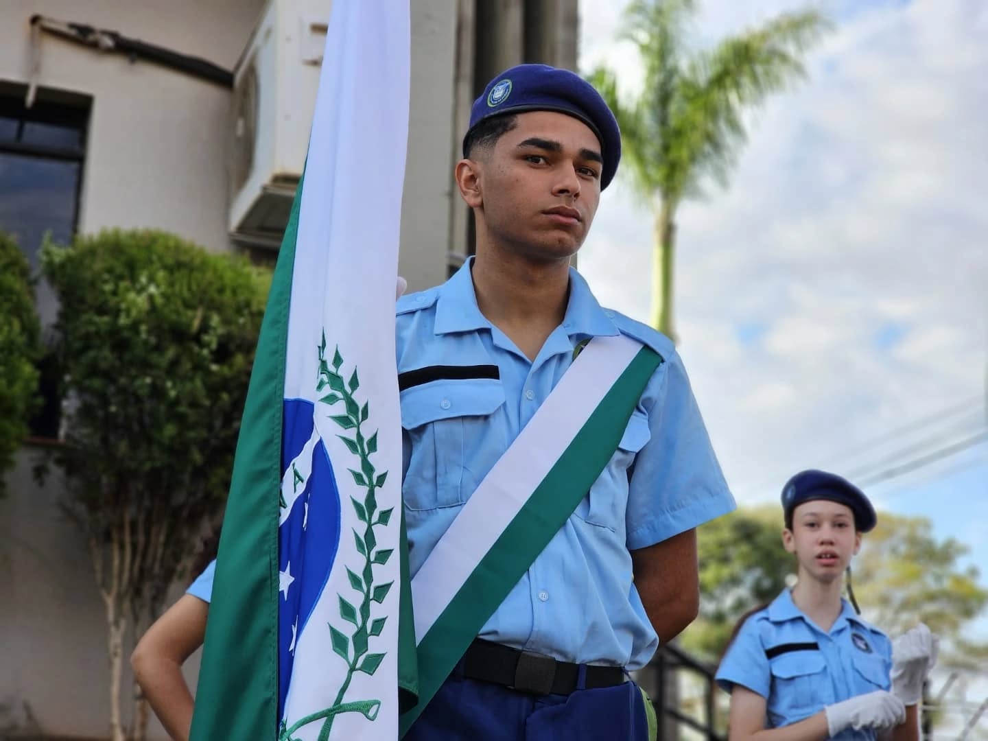 Nesta sexta-feira, dia 5, teve momento cívico, com hasteamento das bandeiras e execução dos hinos do Brasil, do Paraná e de Rolândia.