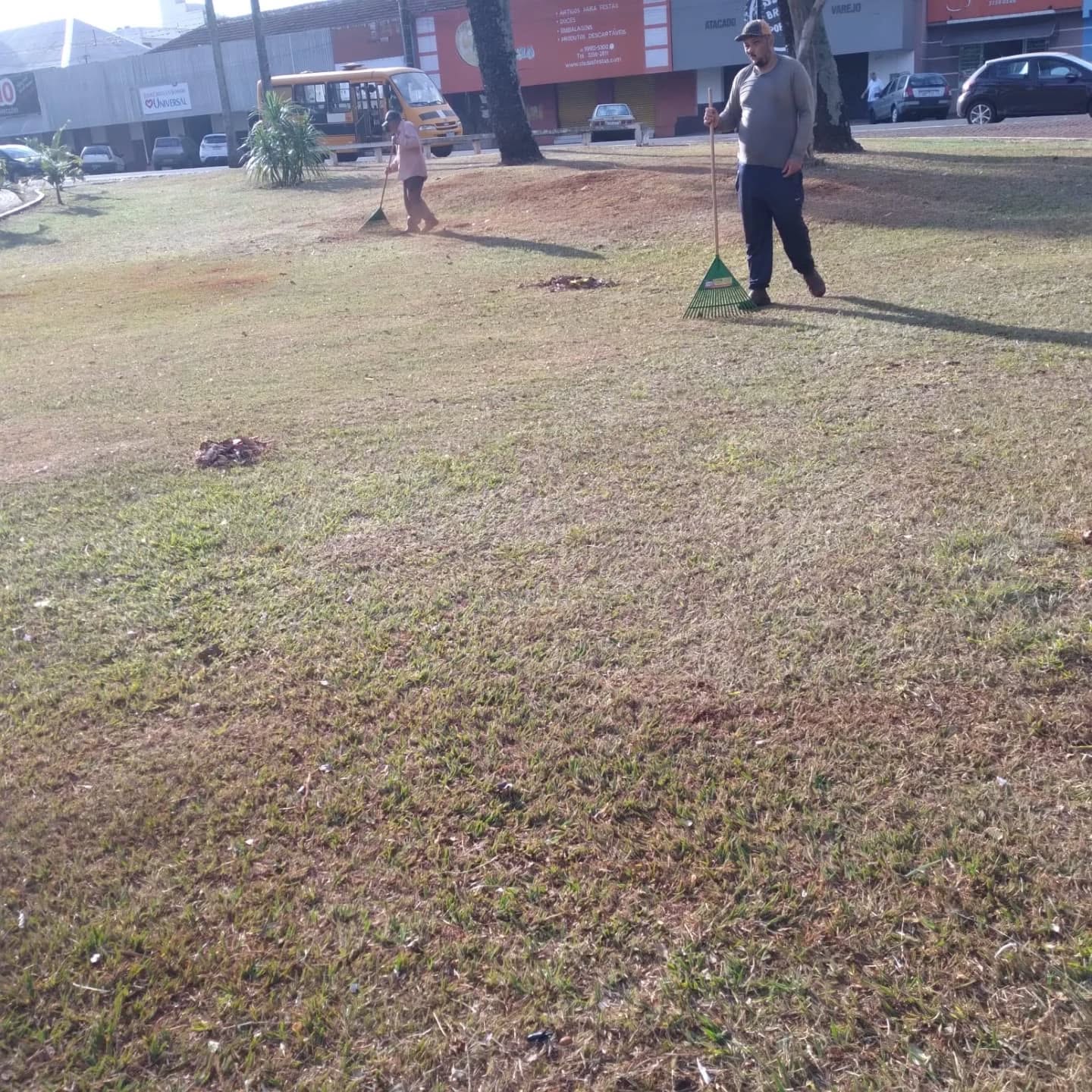 Equipes das Secretarias de Infraestrutura e de Serviços Públicos promovem um grande mutirão de limpeza e roçagem na Praça Castelo Branco e no entorno da Rodoviária.