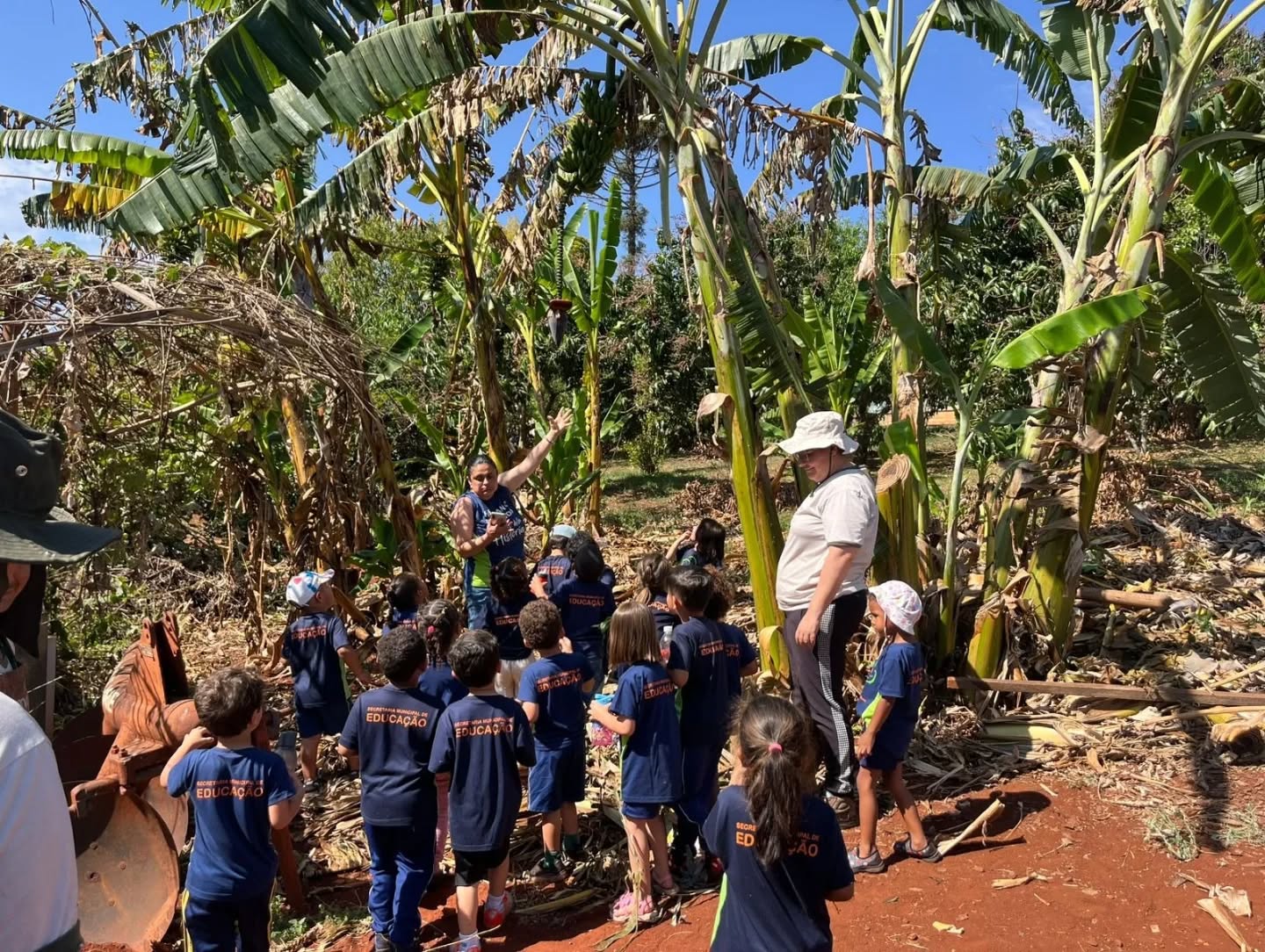 Alunos do CMEI do Perazolo visitam chácara da Apae para conhecer o projeto "AgroFloresta"