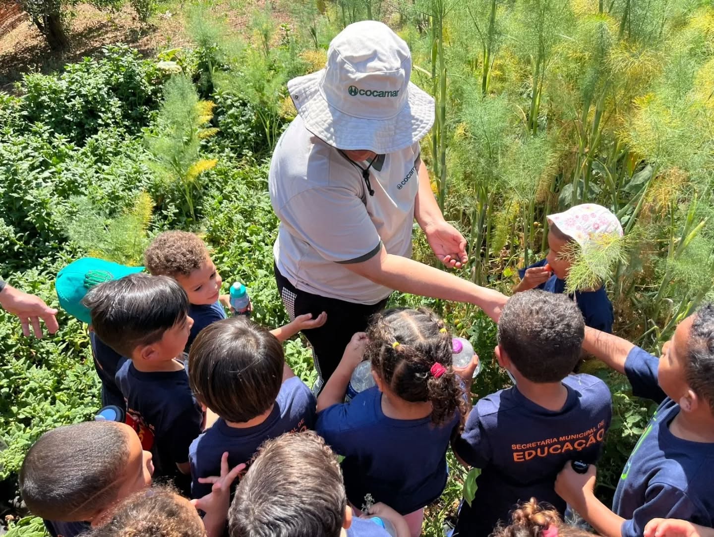 Para desenvolver este projeto, os alunos do Infantil 3, matutino e vespertino, realizaram uma visita pedagógica na chácara da APAE onde a COCAMAR realiza o projeto, para que pudessem visualizar o que está será implantado no espaço educacional.