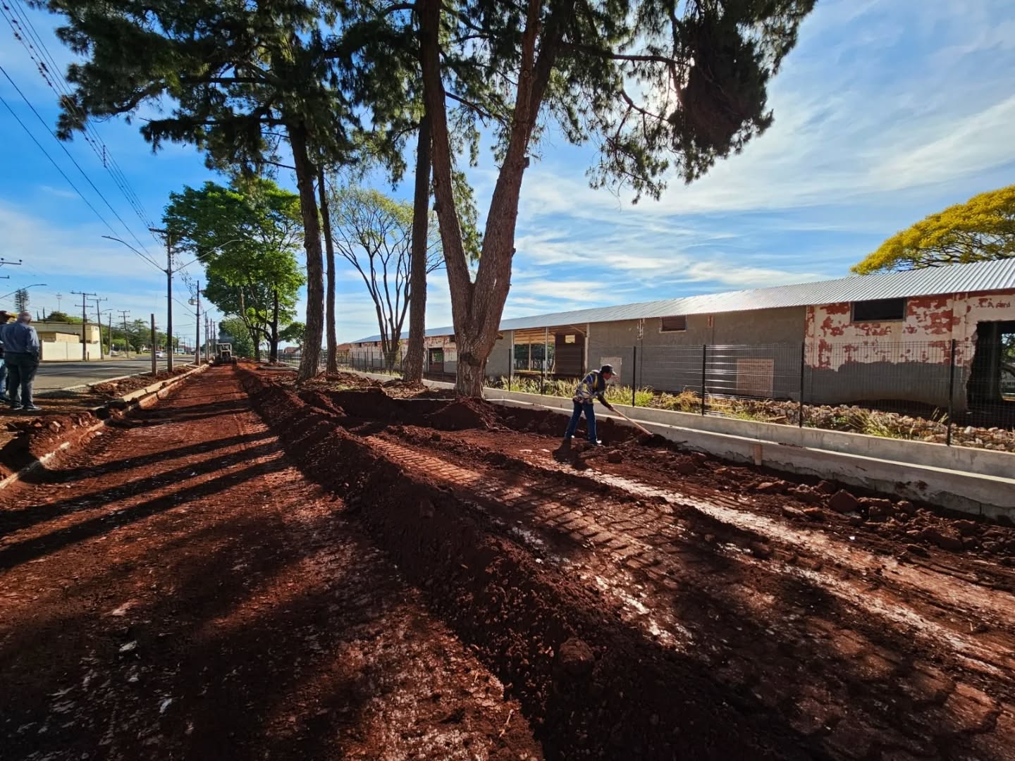 O prefeito Ailton Maistro, o secretário de Planejamento Zeca Salgueiro, o secretário de Serviços Públicos e de Infraestrutura, Lucinei Masson, foram conferir o andamento da obra, que já está transformando a paisagem urbana.