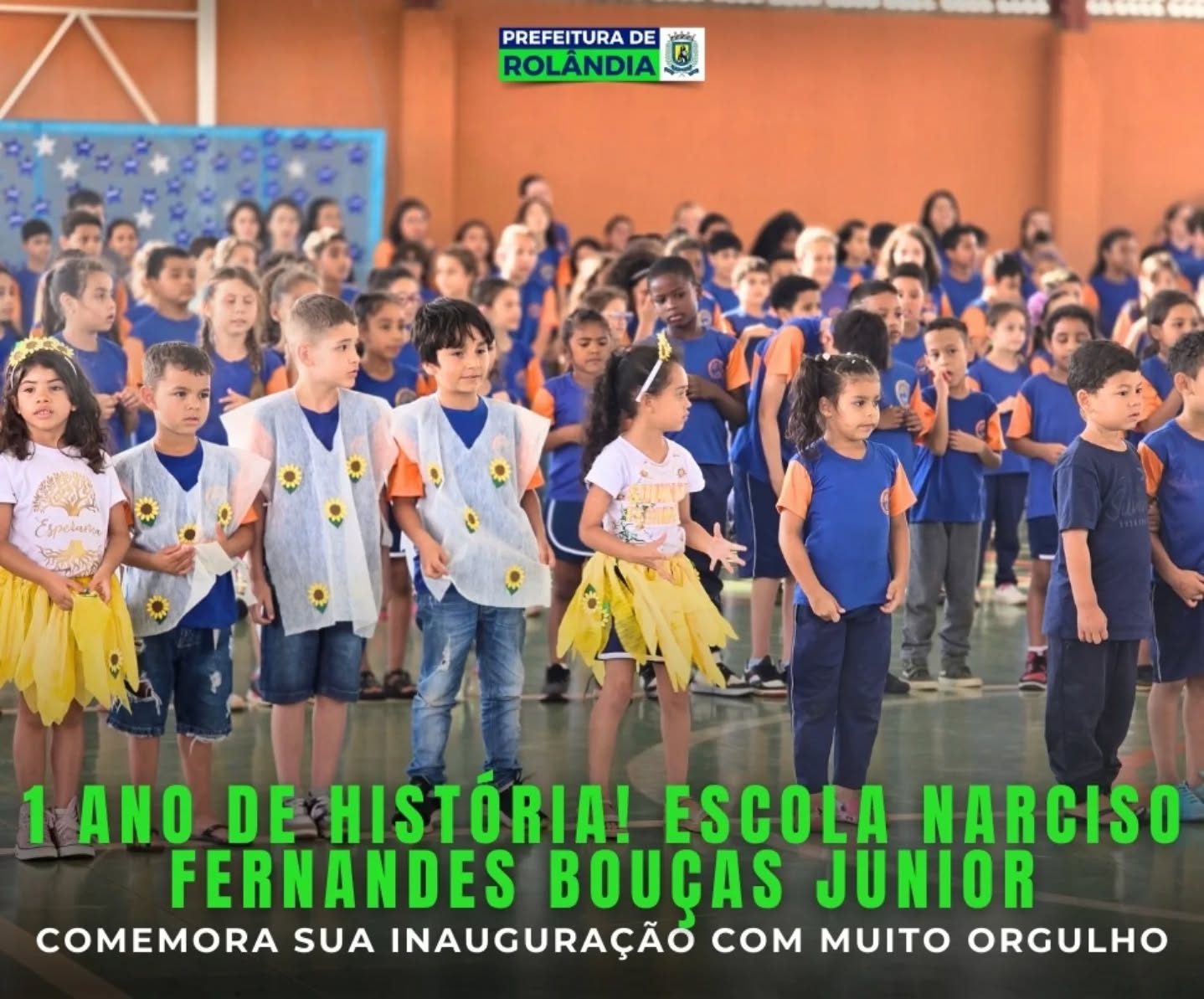 Com muita alegria, animação e interação, a comunidade escolar comemorou o primeiro aniversário e o primeiro ano letivo da Escola Municipal Narciso Fernandes Bouças Júnior – Educação Infantil e Ensino Fundamental, situada na Avenida Japão, no Jardim Nobre VI, em evento realizado nas dependências da unidade.