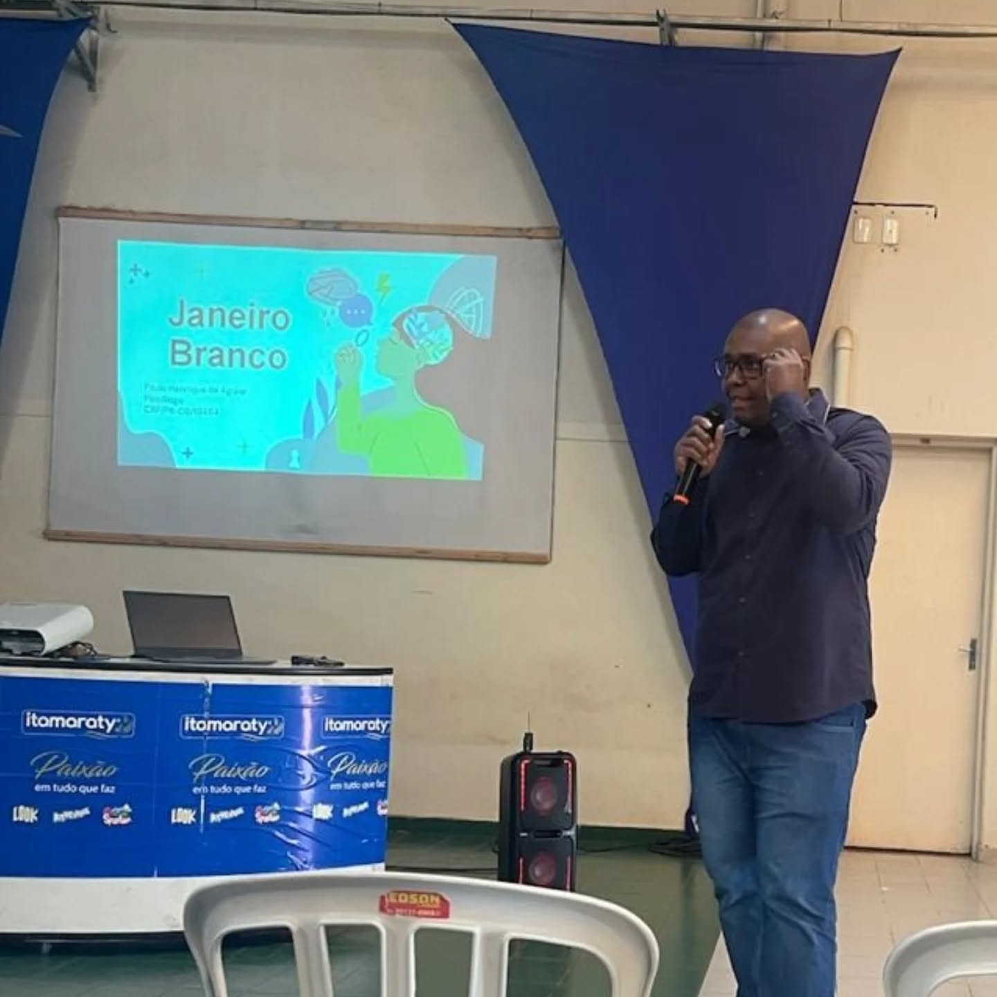 Para ampliar o trabalho de valorização da saúde mental, dentro das ações do “Janeiro Branco”, a secretaria de Saúde, por meio do psicólogo Paulo Henrique de Aguiar, do CAPS II, proferiu uma palestra aos colaboradores da empresa Itamaraty.