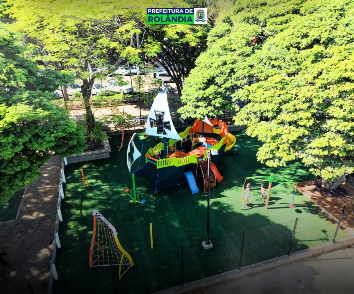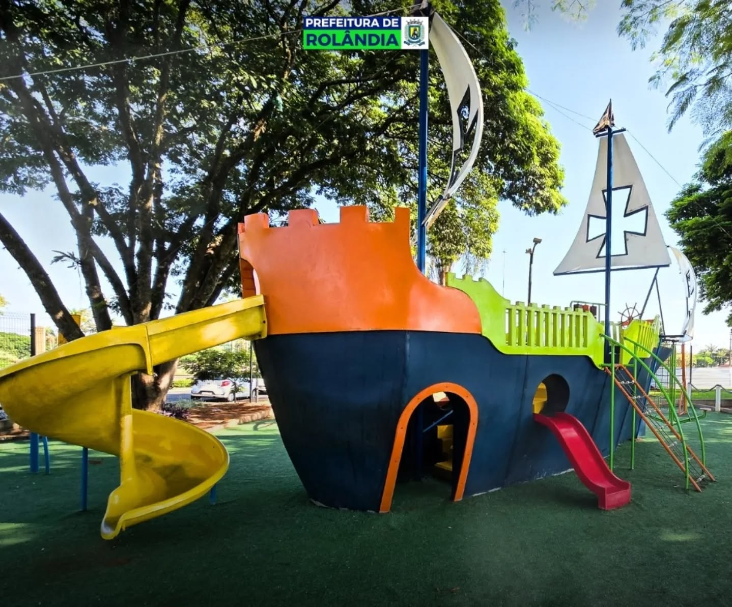 O parque temático infantil, em formato de caravela, na Praça Presidente Tancredo Neves, na região central de Rolândia, recebeu um importante reforço no bem-estar das crianças.