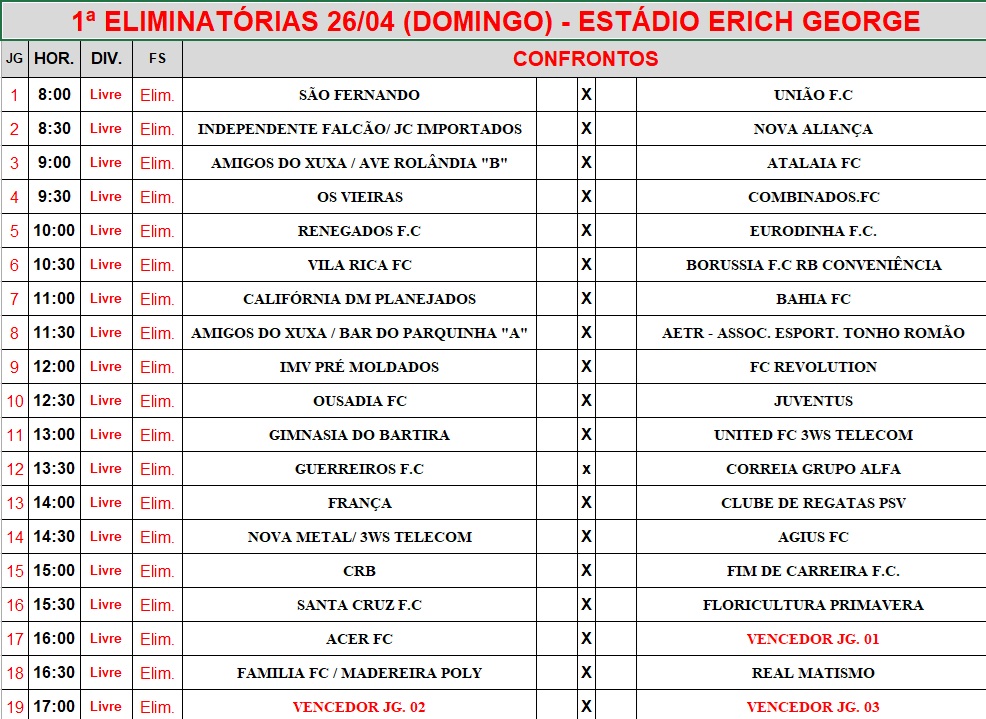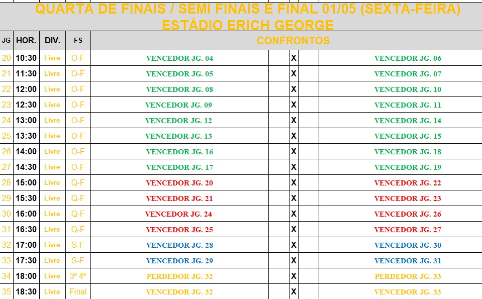 Confira em anexo as tabelas com os dias e horários das partidas dessas modalidades.