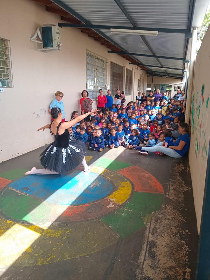 Continuando o trabalho com as profissões Cmei Marly recebeu uma bailarina, qu...
