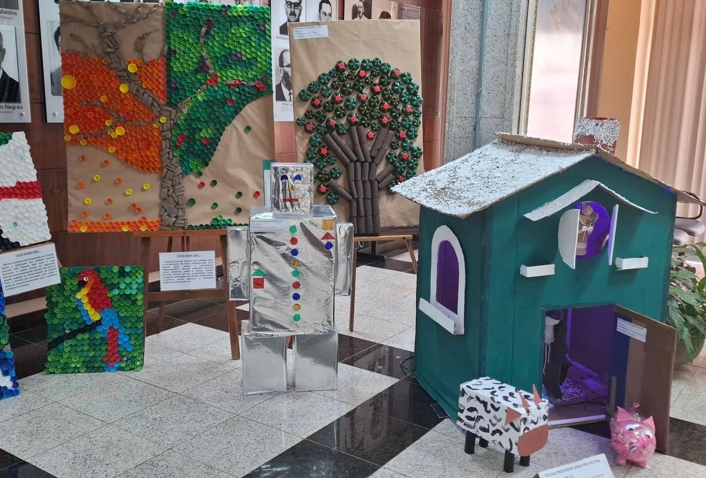 SEMANA LIXO ZERO FAZ EXPOSIÇÃO DE TRABALHOS DE ALUNOS NO SAGUÃO DA PREFEITURA