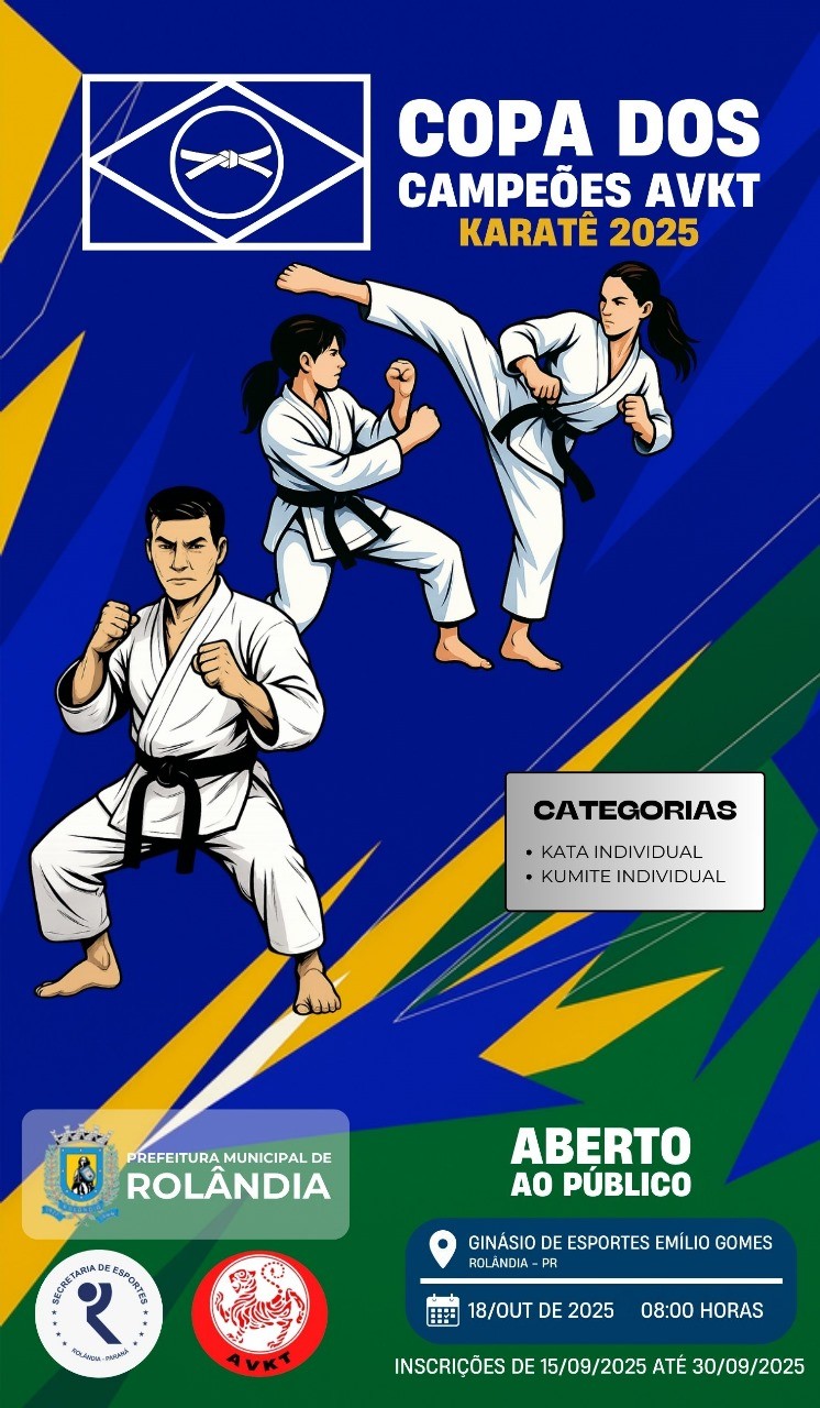 ROLÂNDIA SERÁ PALCO DA “COPA DOS CAMPEÕES DE KARATÊ”   Secretaria de Esportes informa sobre grande evento de karatê!   Mais informações e inscrições (43) 9995...