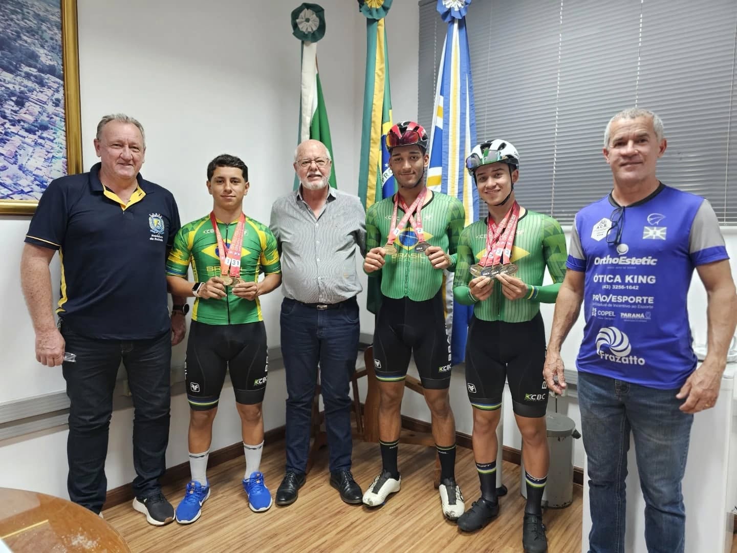 CICLISTAS ROLANDENSES APRESENTAM MEDALHAS AO PREFEITO E AO SECRETÁRIO DE ESPO...