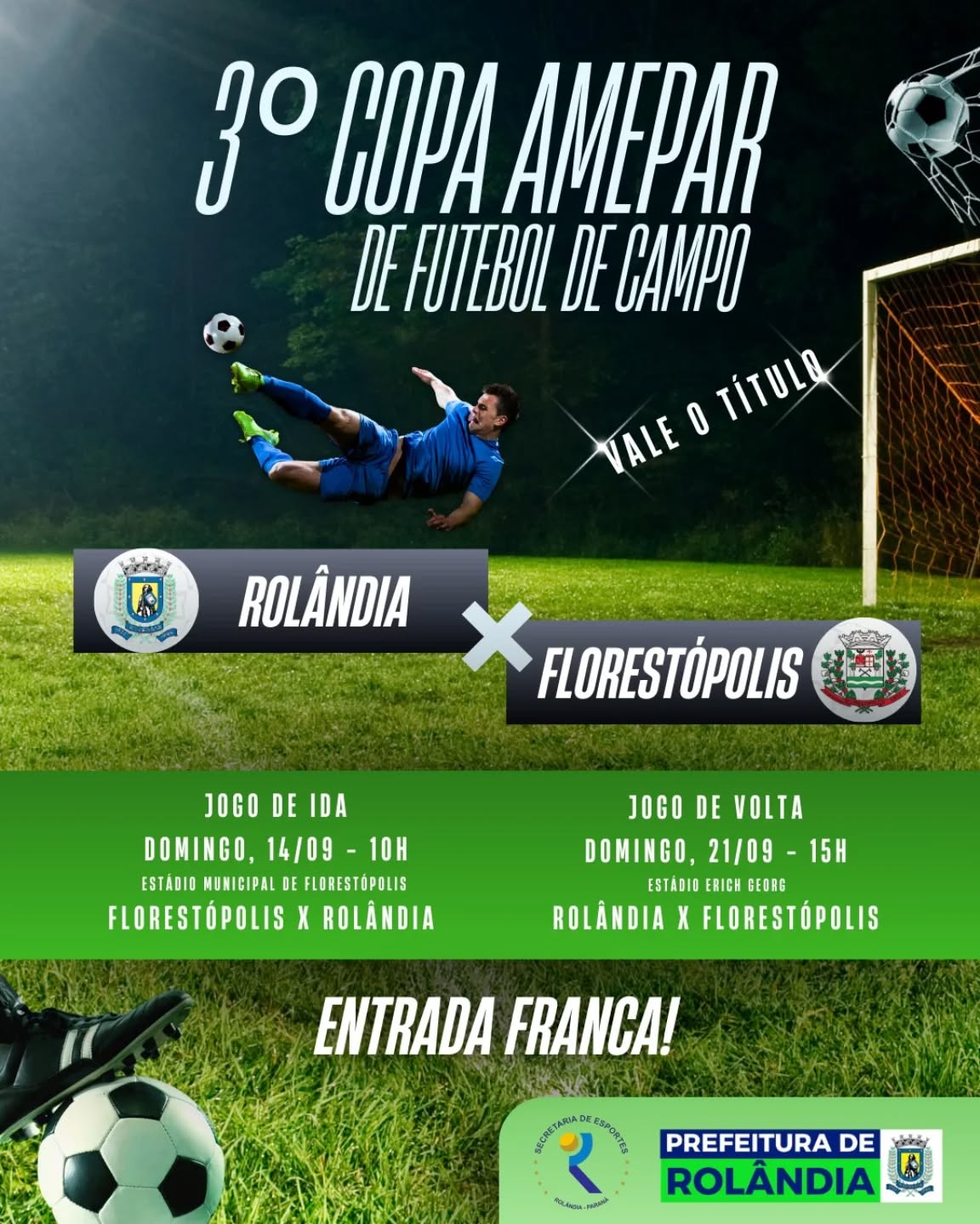Agora é decisão! Vale o título da 3° Copa Amepar de Futebol de Campo   A secretaria de Esportes informa sobre as finais do certame! Jogo de ida Domingo, 14/09 - 10h Estádio Municipal de Florest...
